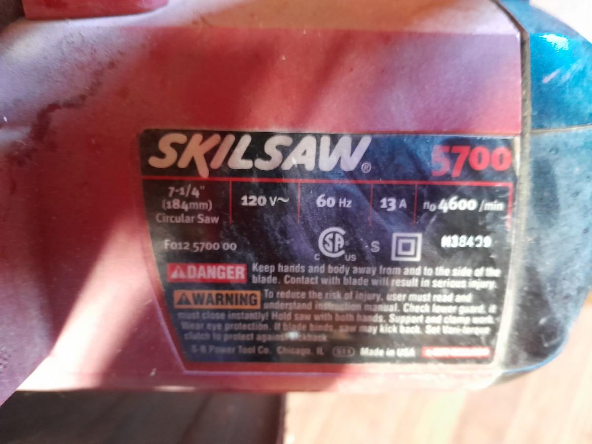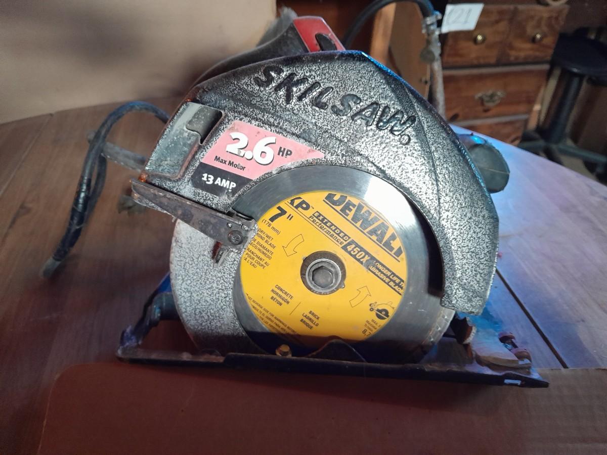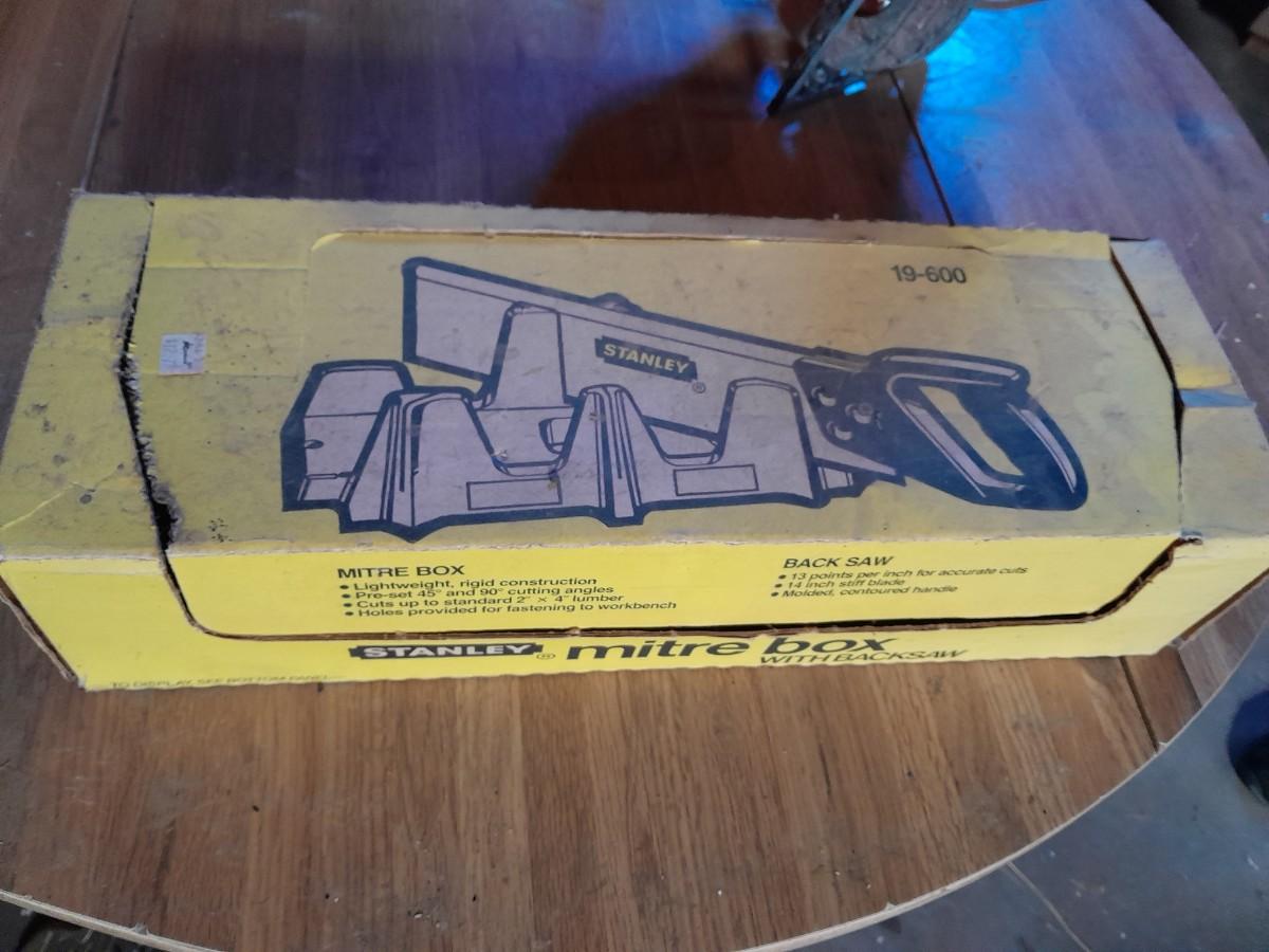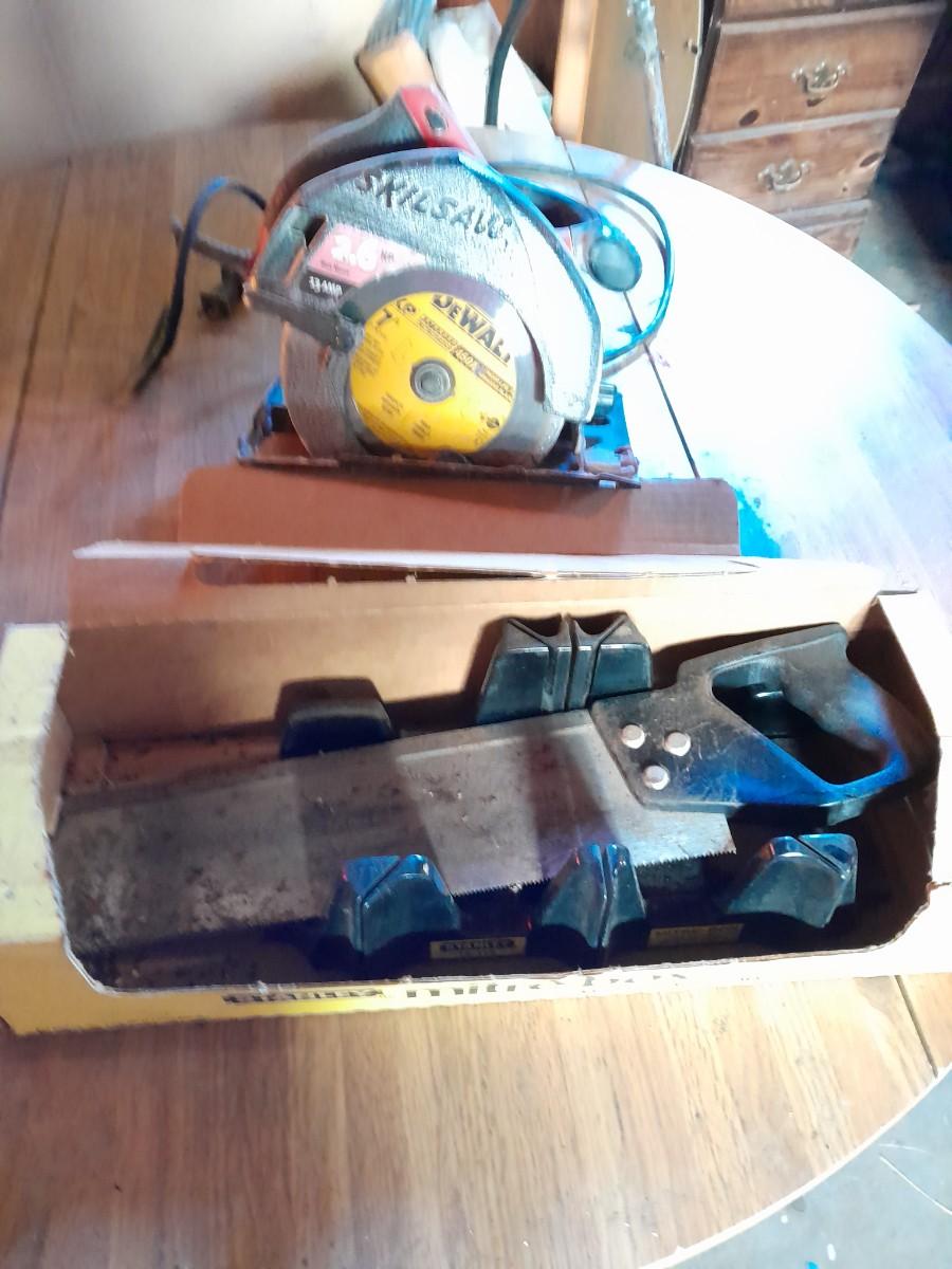STANLEY MITRE BOX WITH HAND SAW AND AN ELECTRIC 2.6 HP SKILSAW WITH 7 1/4" BLADE (repaired cord)