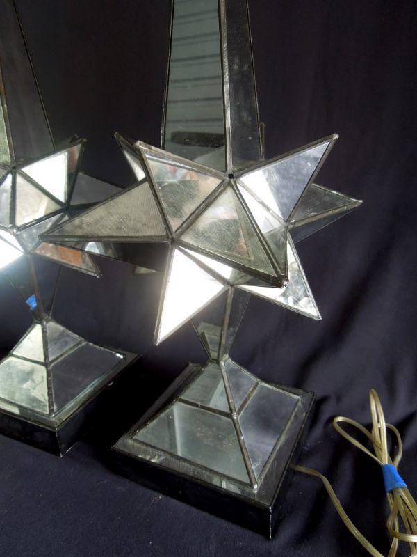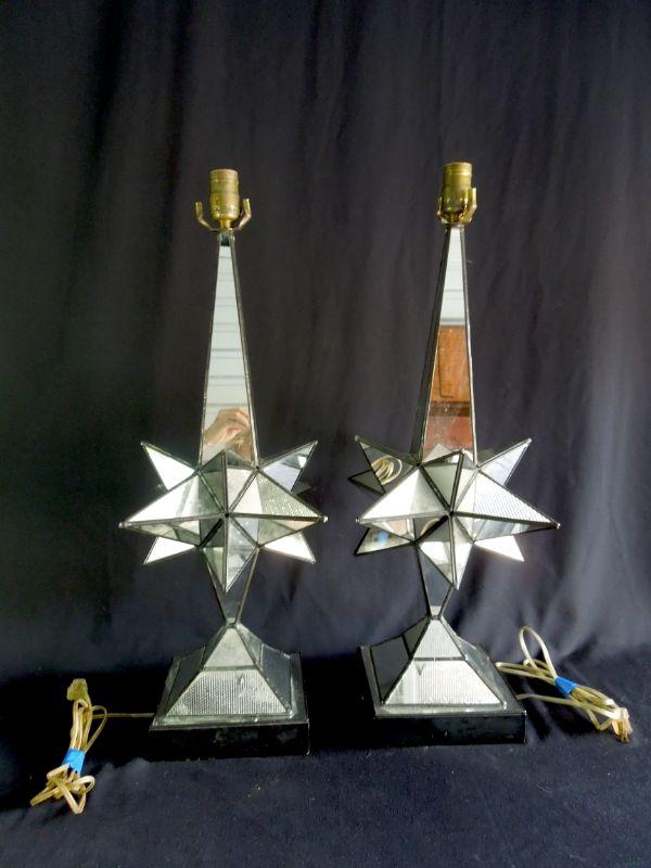 Lot 136: Pair of Retro Atomic Mirror Paneled Star Lamps