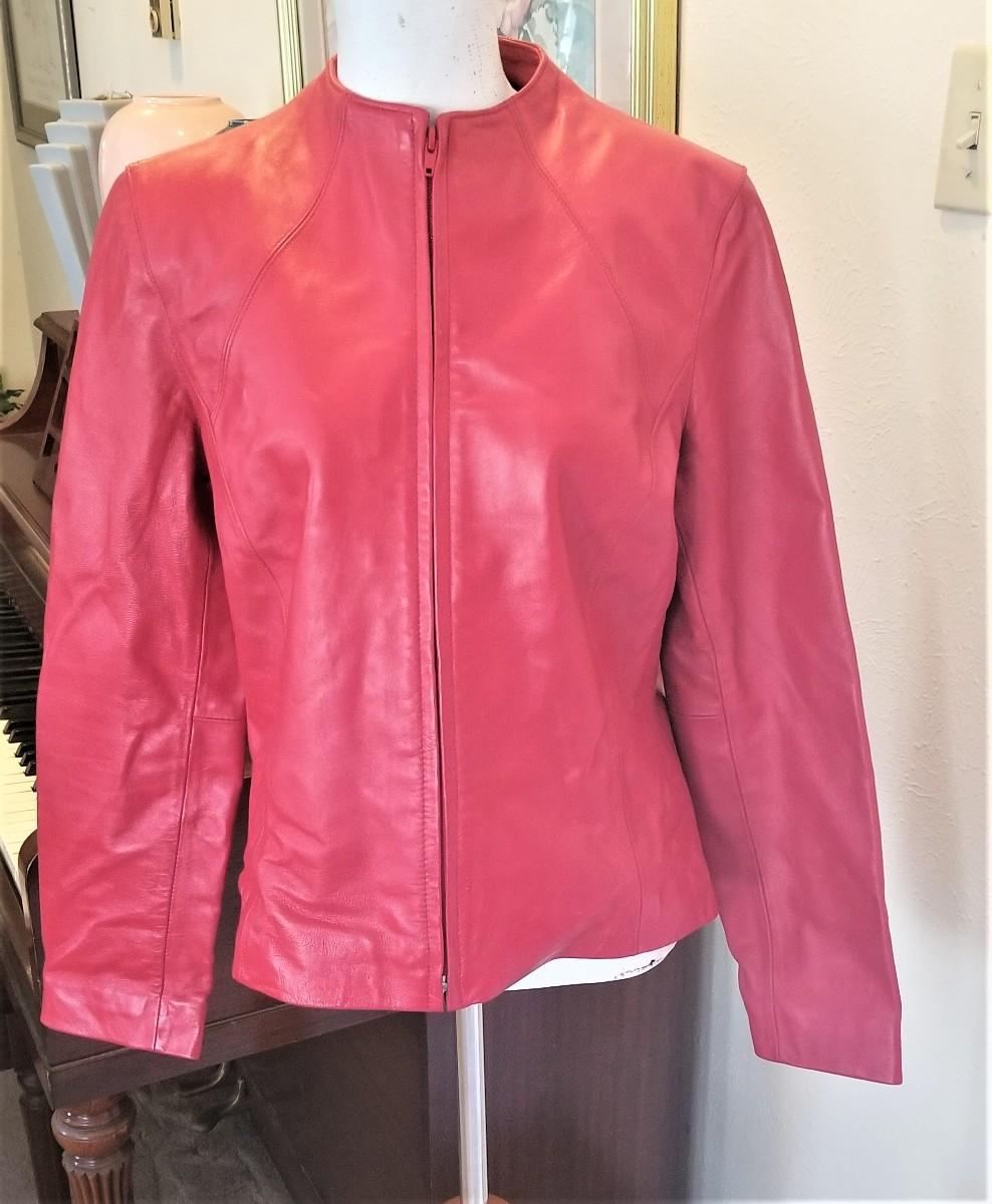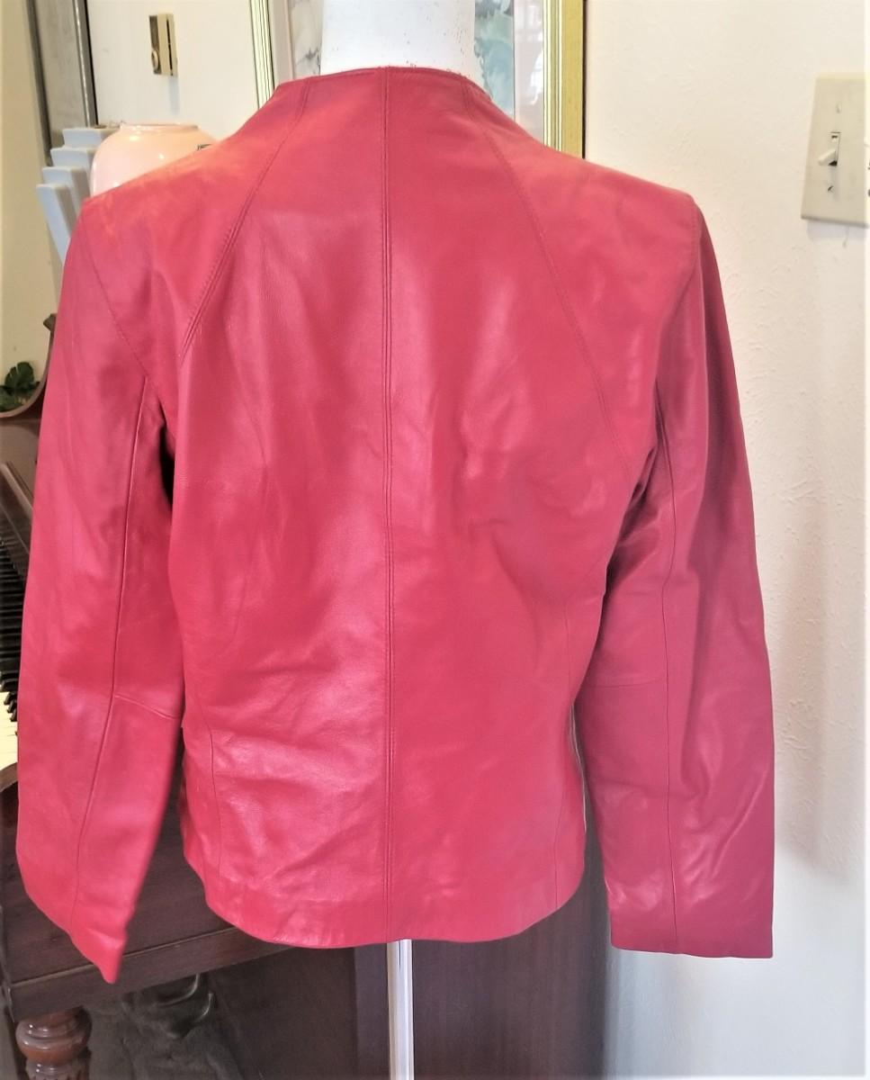 Beautiful, soft red lamb leather jacket, size 6, 15" at the shoulders, 23" sleeve - jacket is 23" long. So gently worn you'll think it's new.