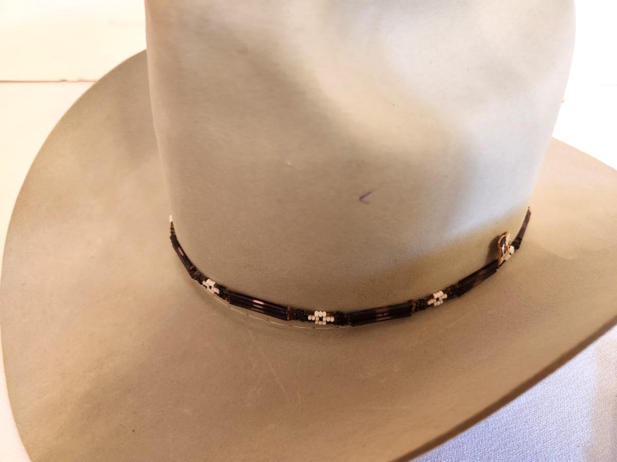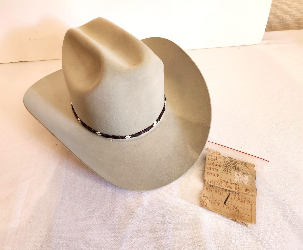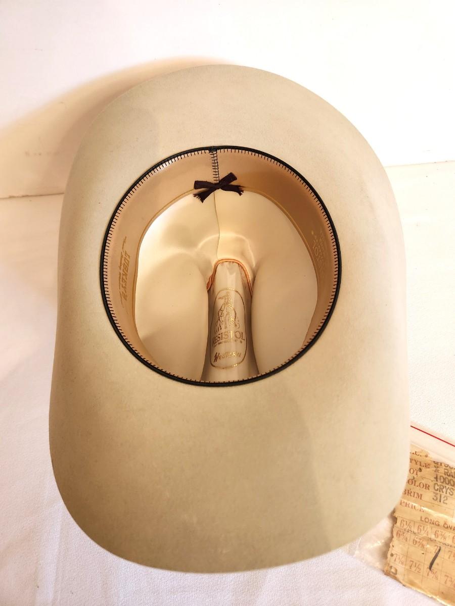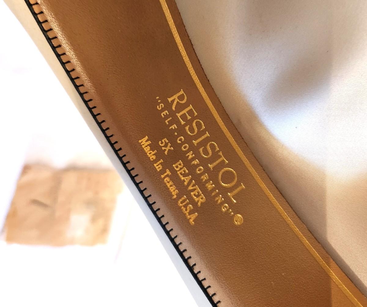 Men's Resistol 5x Beaver Western style Hat - original box - beaded hat band. Small mark in one spot (see photos). Has paperwork that indicates hat is a size 7 (I think - hard to read).