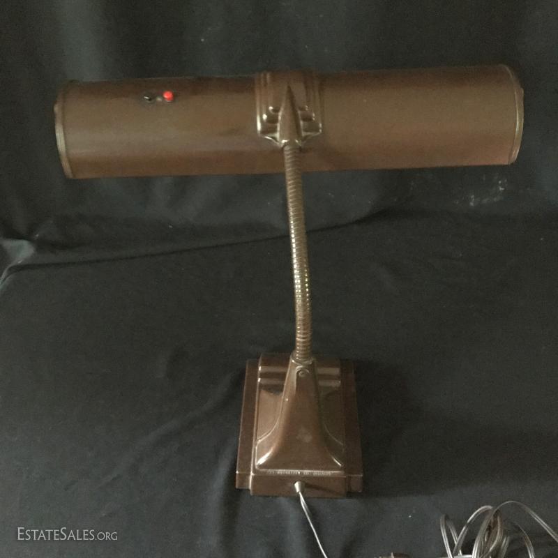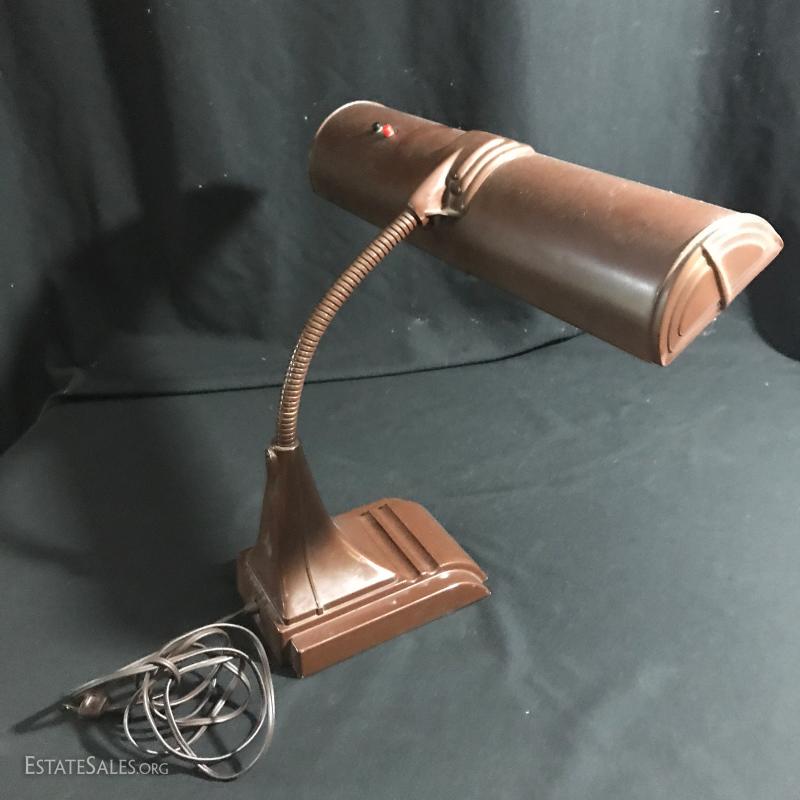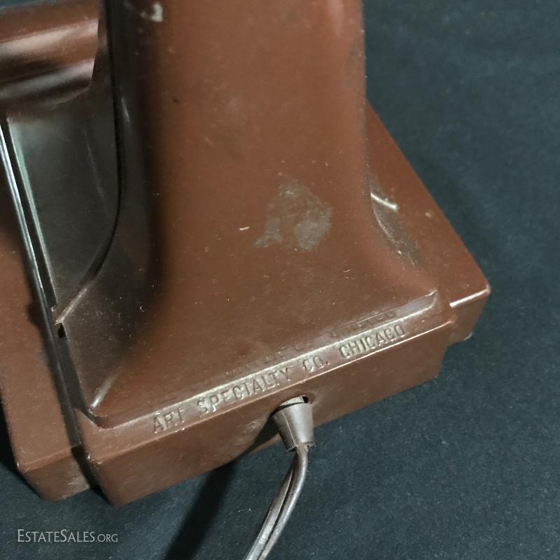 Retro Desk Lamp by Art Specialty Co in Chicago. Dark Brown color. Works fine. Lamp is 13" tall and 18" wide.