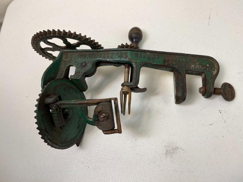 Lot# 136 s Antique Apple Peeler Turntable “˜98 GOODELL Cast Iron Kitchen
