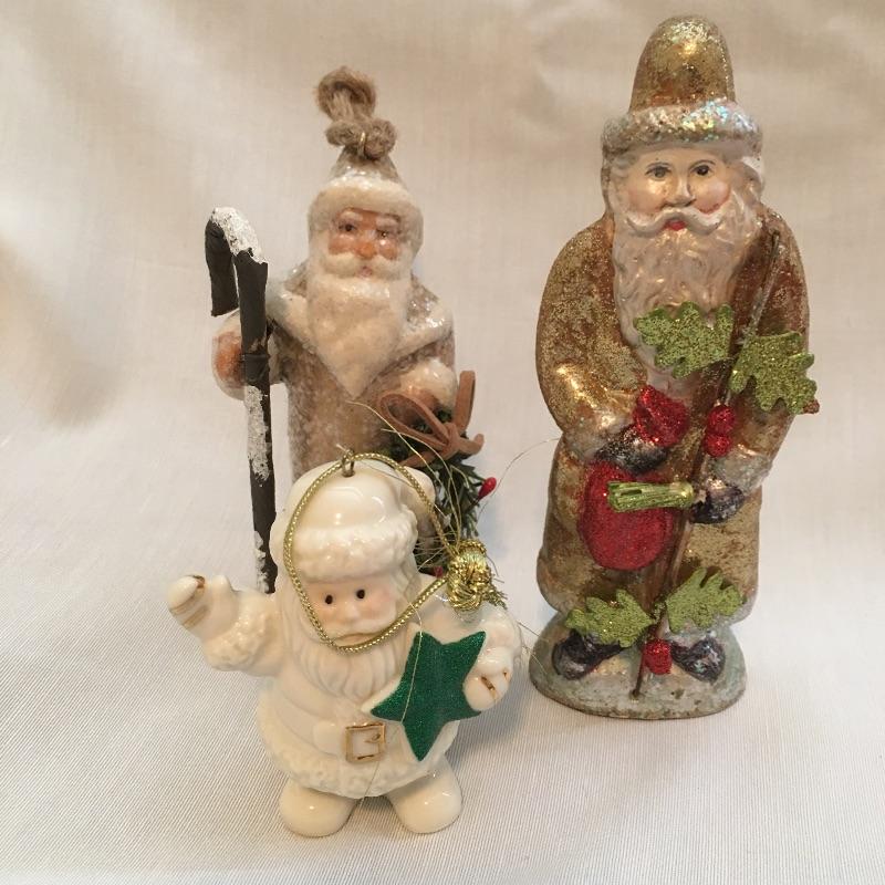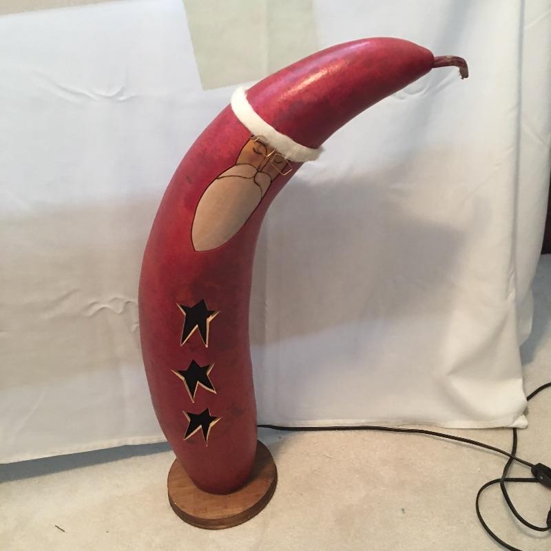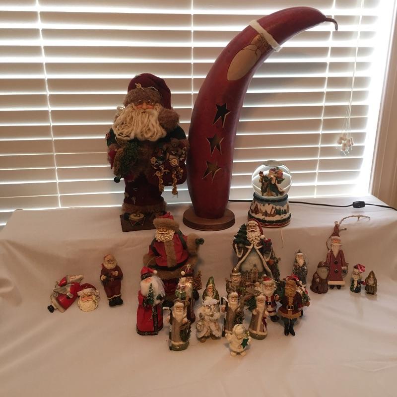 Slew of Santa’s to make the jolly old elf proud. Collection features Lenox ornament and includes gourd light, snow globe, Biltmore Santa, and a large Santa. We’ve included large array of Santa ornaments and decorations in wood, plastic and ceramic. Lamp measures 23” tall.