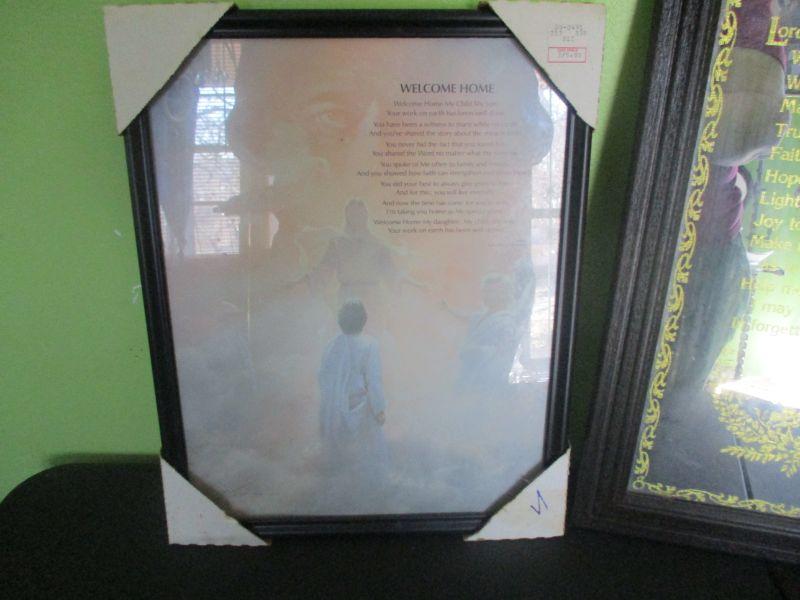 The non-mirror starts with, "Welcome home my child, my son." The mirror starts with, "Lord make me an instrument of thy peace, where there is hate, may I bring love."