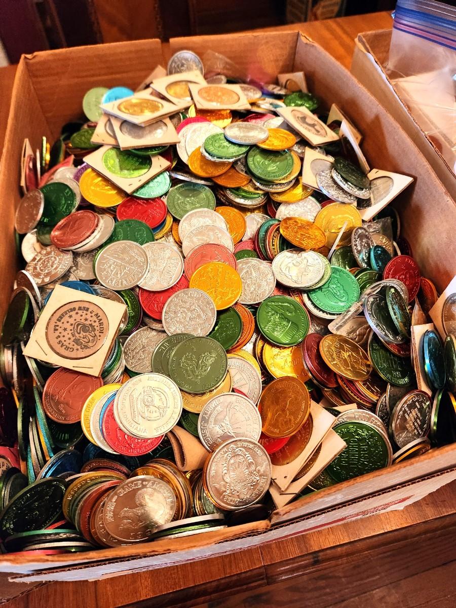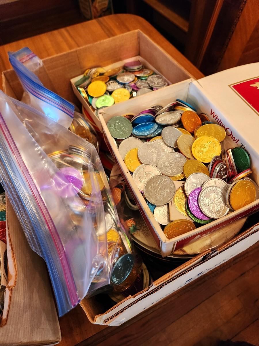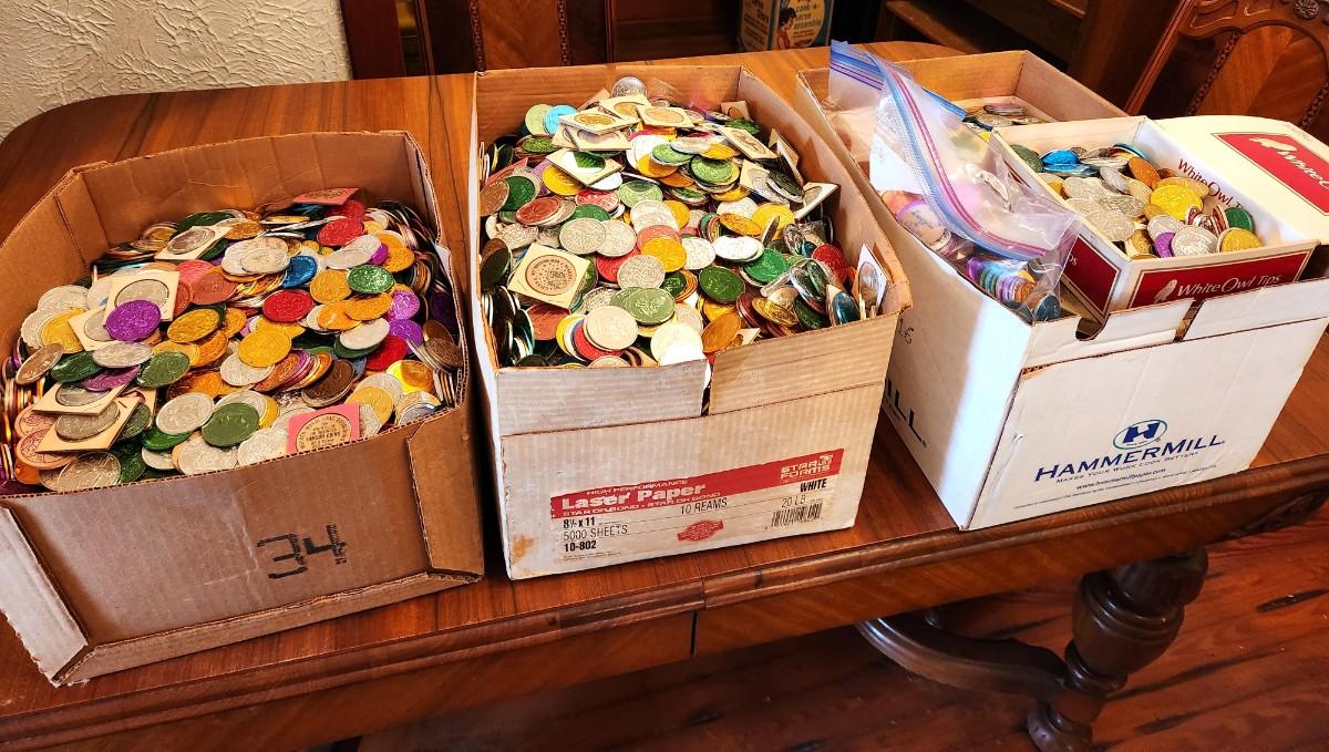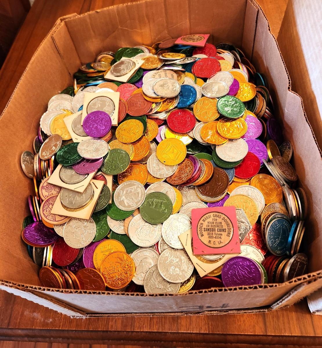 Lot #136 Three Large Boxes FILLED with vintage Mardi Gras Doubloons
