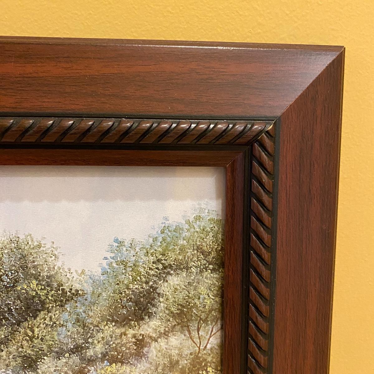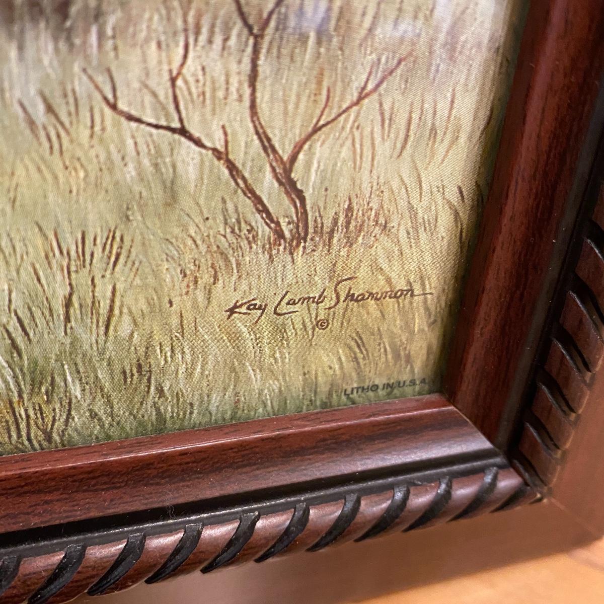 The second print is by Kay Lamb Shannon and measures 23.5” x 20”. It also is behind glass in a dark faux wood frame. Shipping available.
