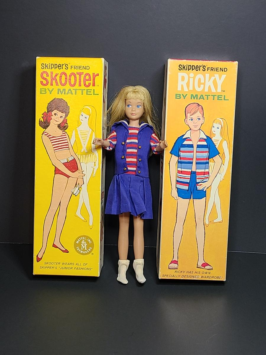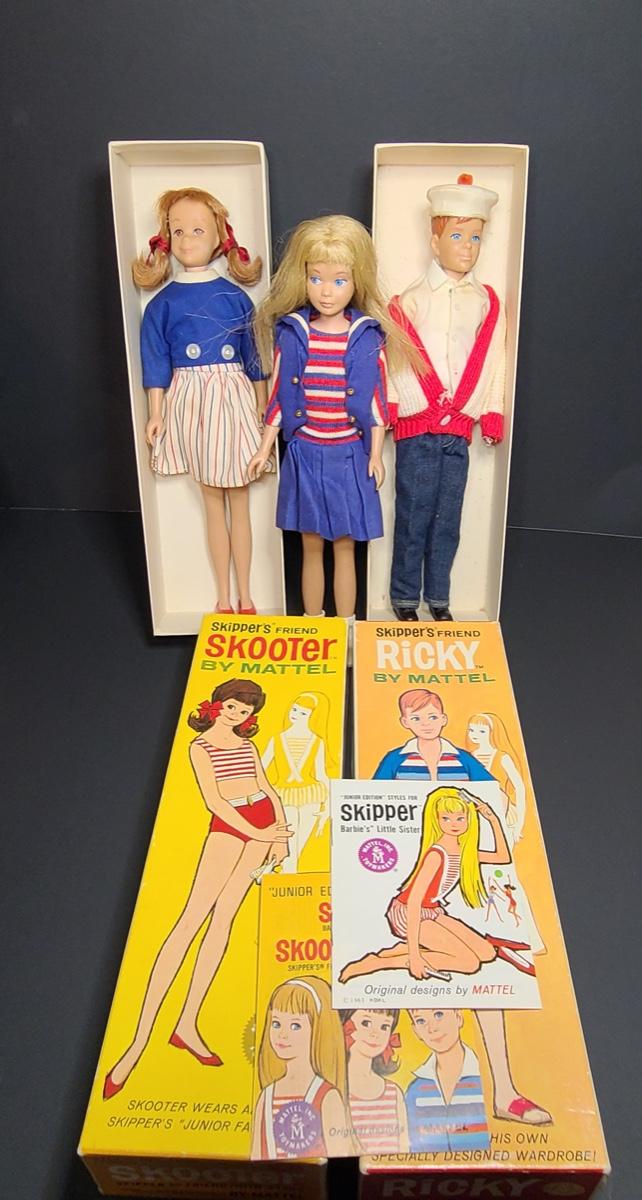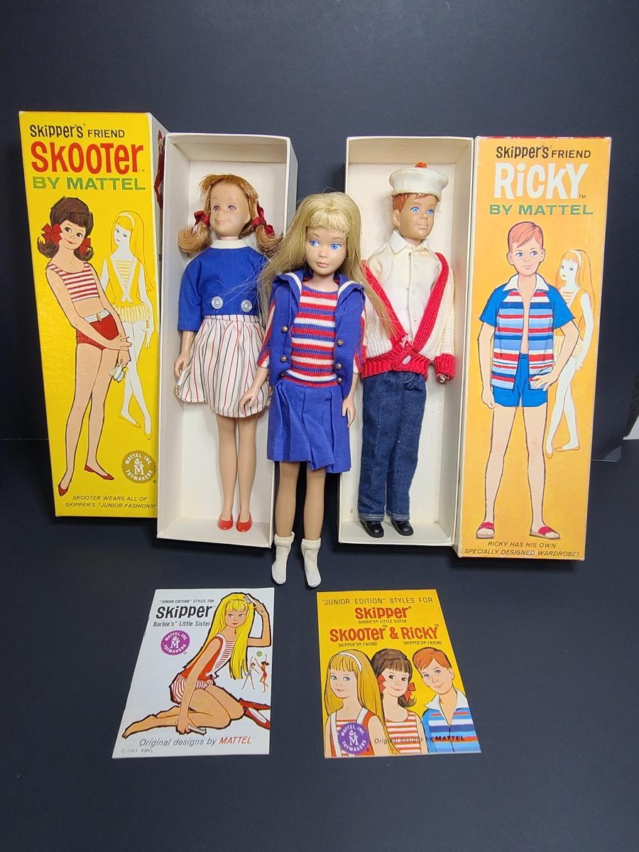Lot 136: Vintage Barbie Dolls: Skooter, Skipper, and Ricky, & Mini Clothes Catalogs
