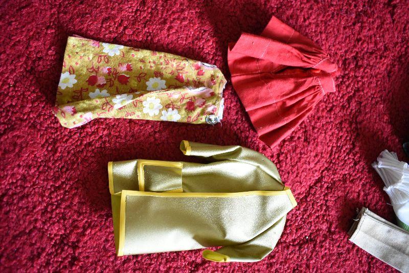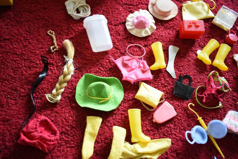 Clothes and accessories. Shoes, hats, boots, and even a braided pony tail.