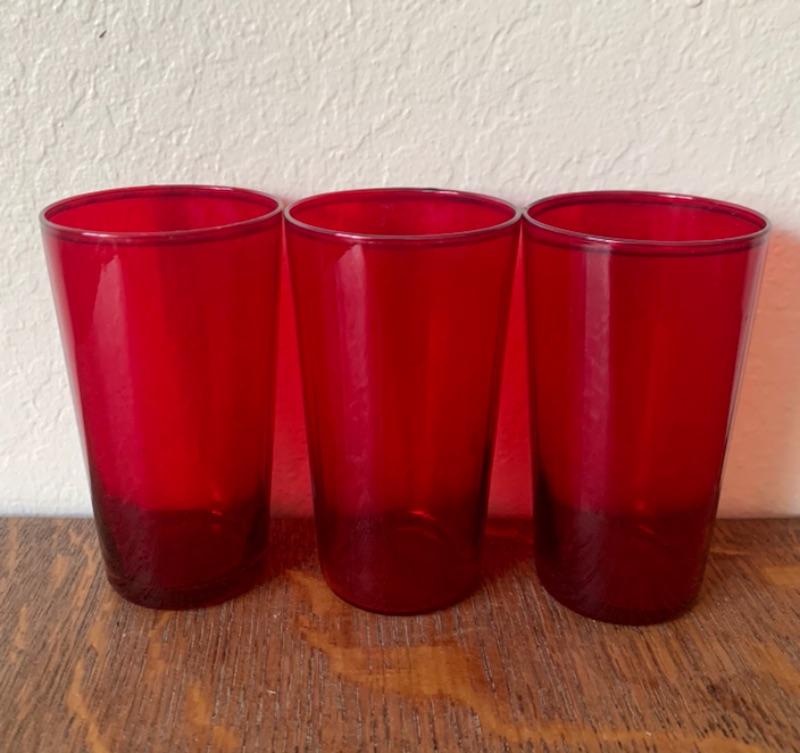Lot 136 - Vintage MCM Ruby Red Juice Glasses