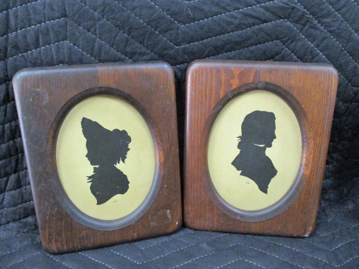 Vintage Silhouette Pictures Maple Wood Frames Male & Female in Period Clothing