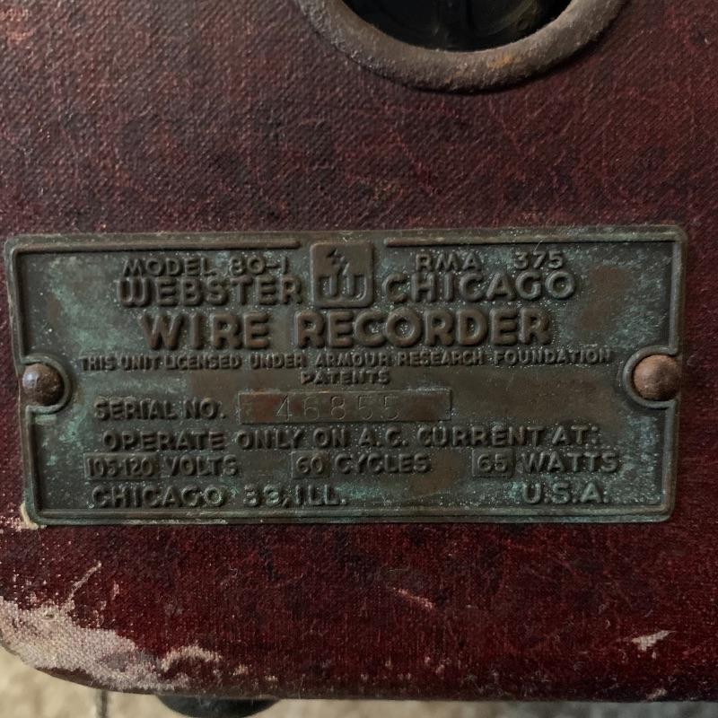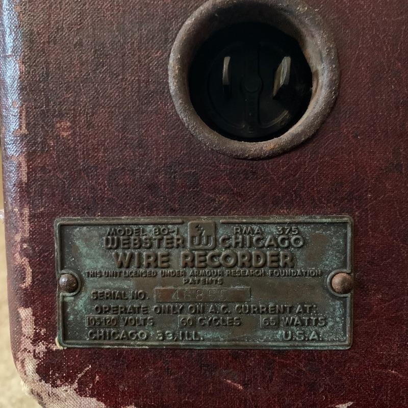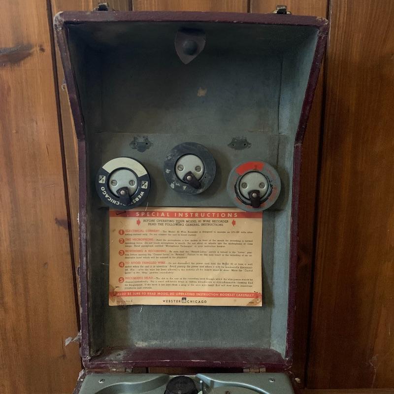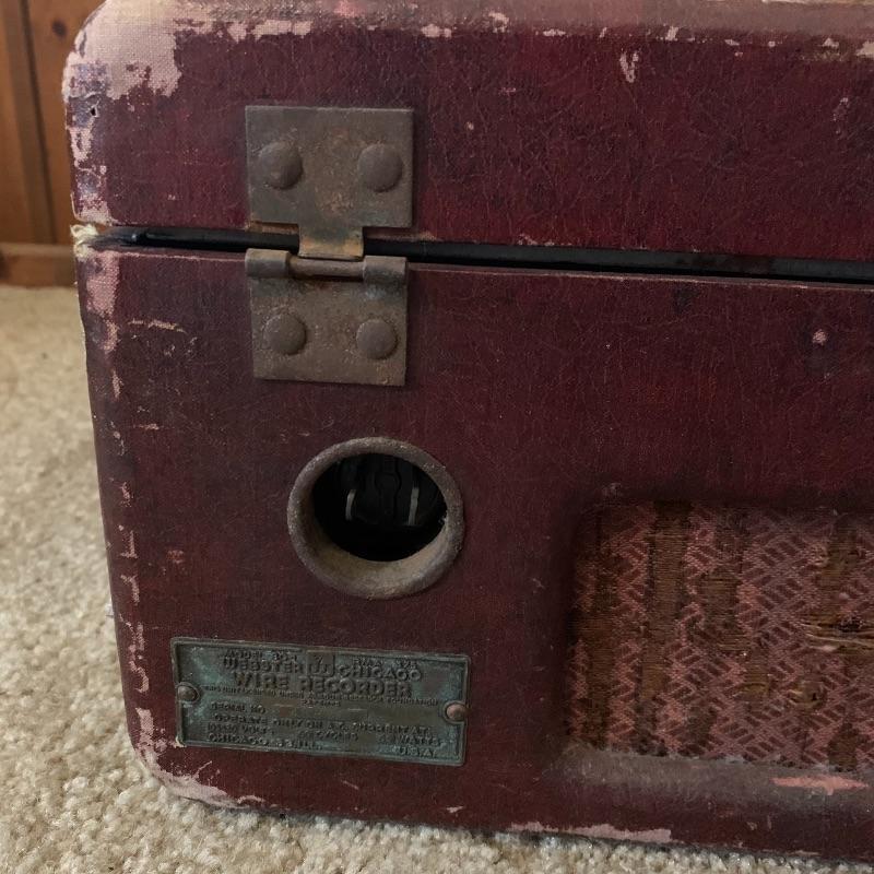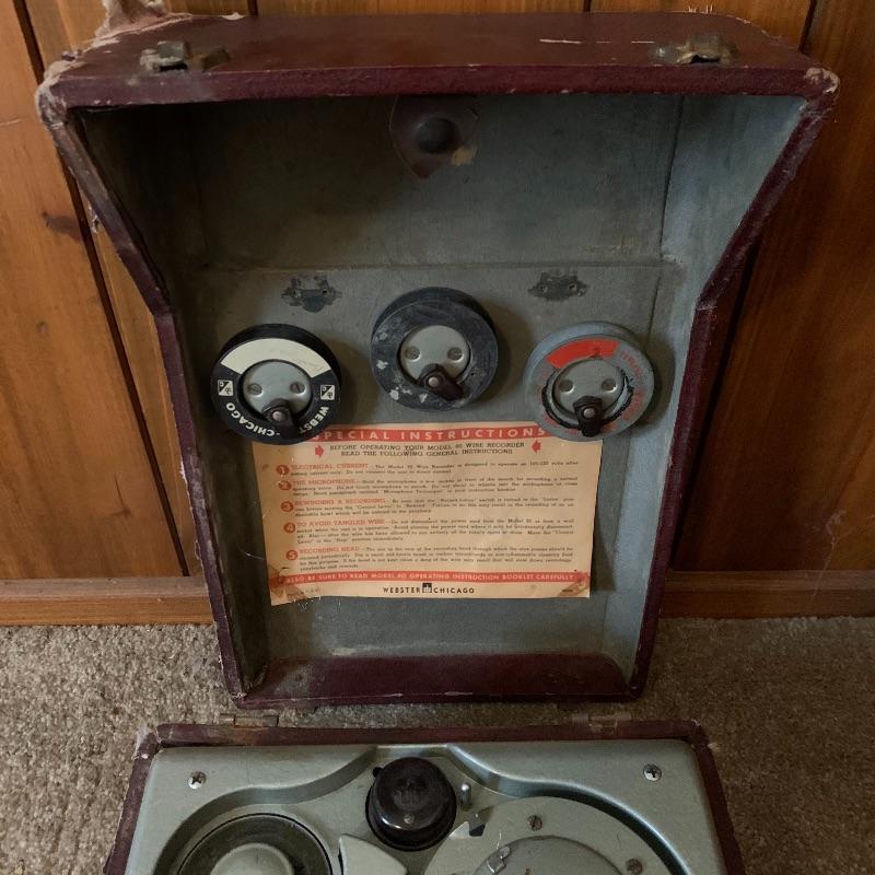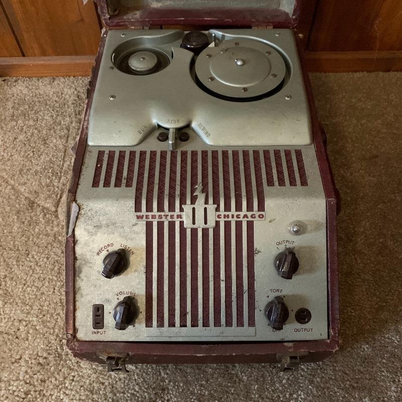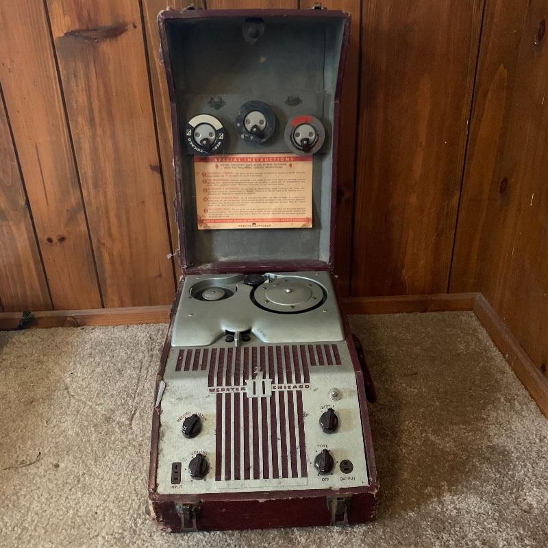 This lot is a vintage Webster Wire Chicago Recorder, Model 80-1. The outside of the case is very worn. It latches shut and has a handle. There is a plug however we were unable to test it. All