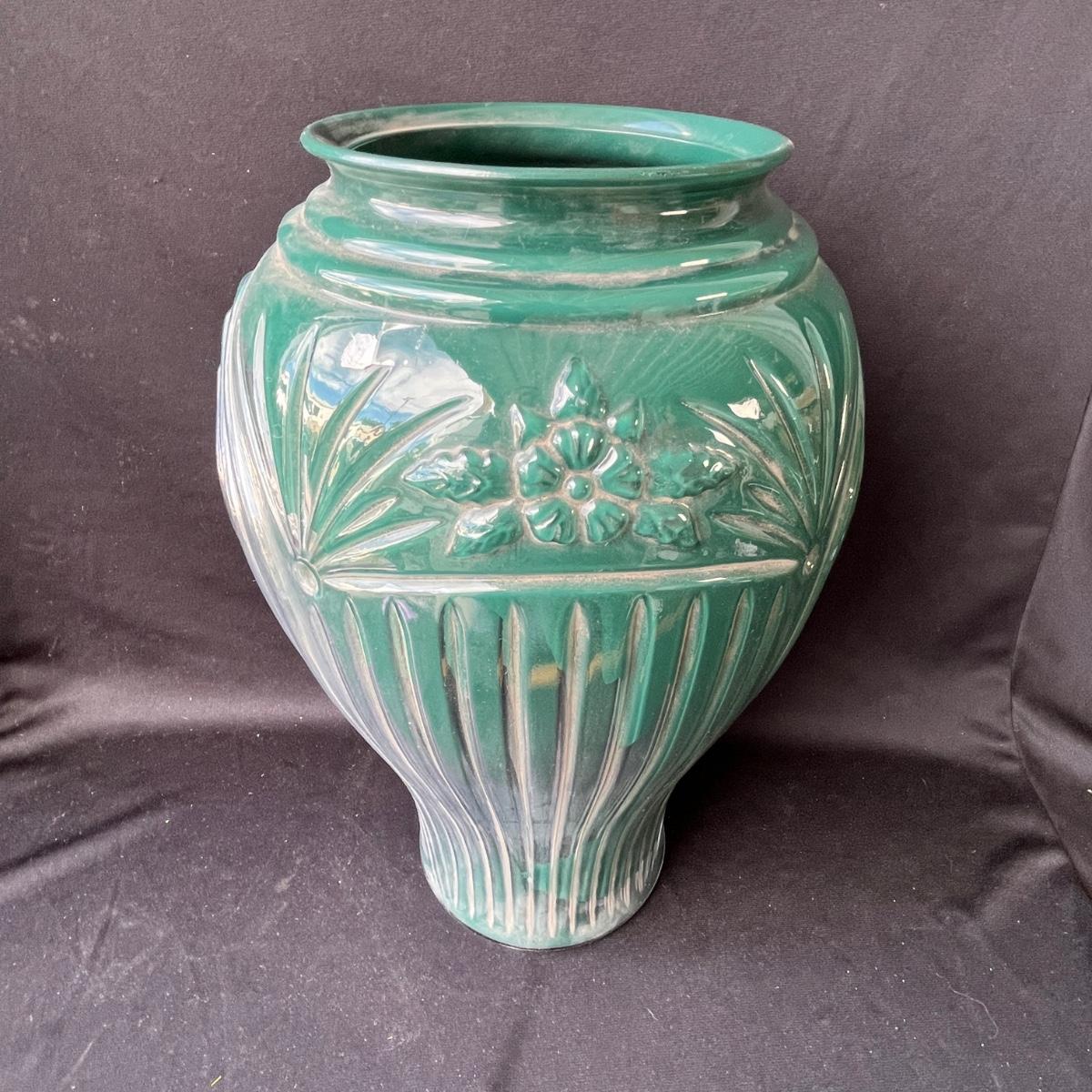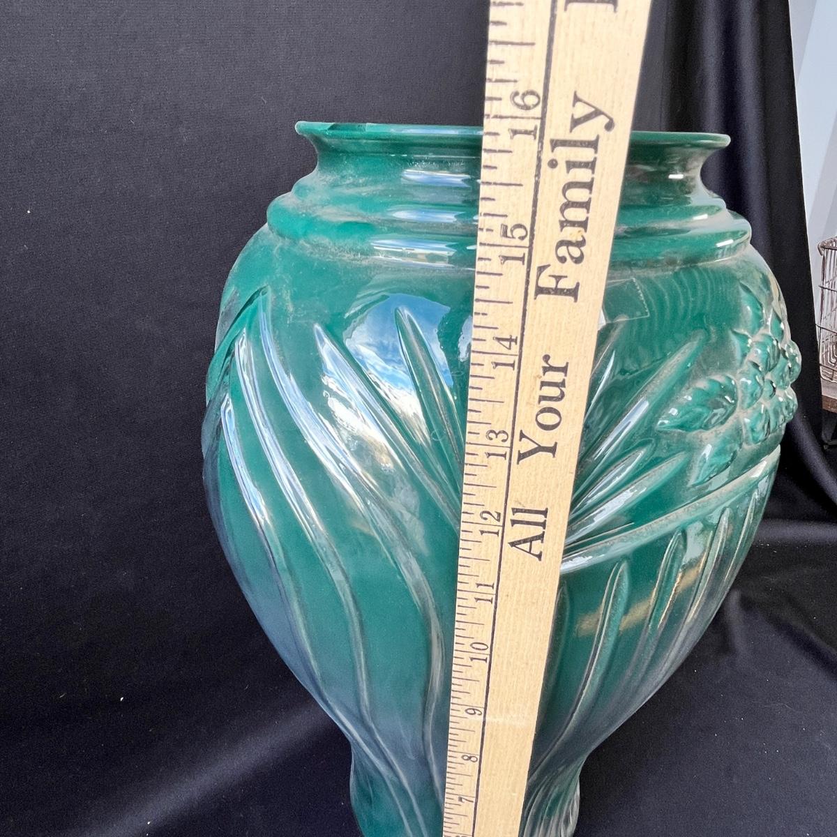 Sorry it is so dusty! The vase is clear with a flash interior painting.