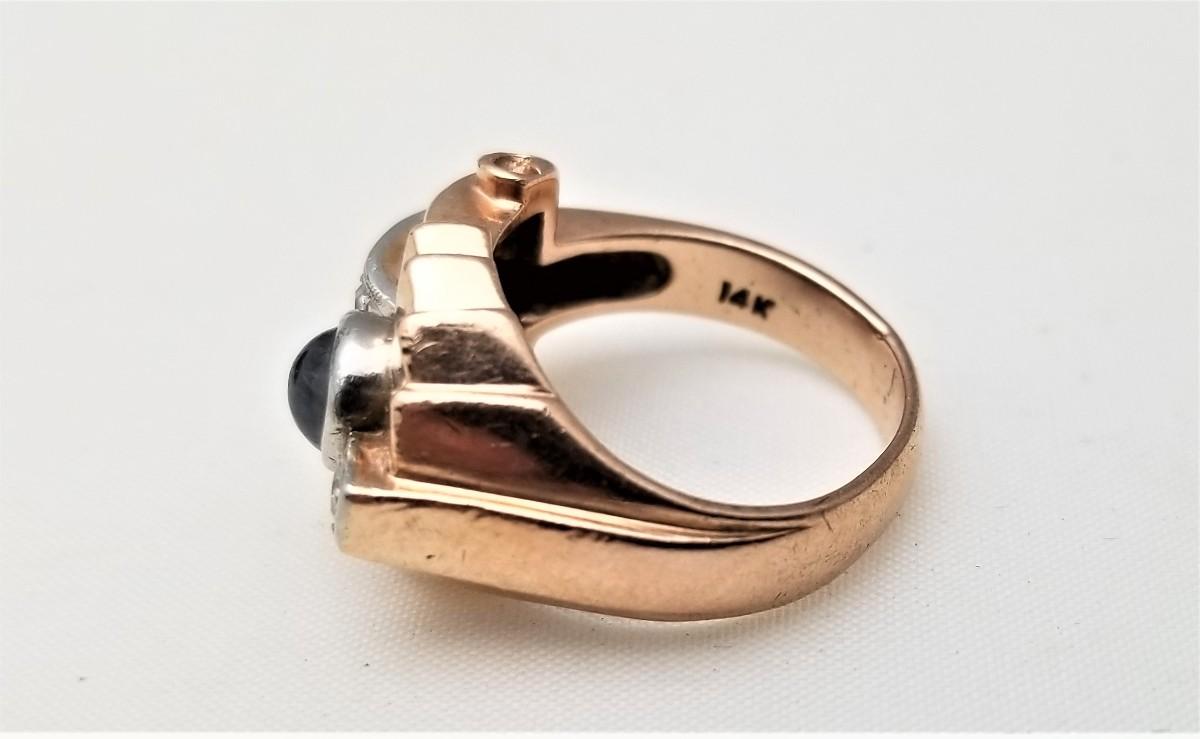 Lot #137  14kt Rose Gold Art Deco ring - Moonstone/diamonds - size 6.5