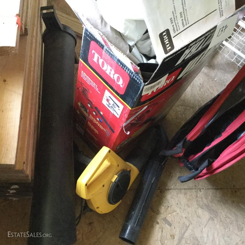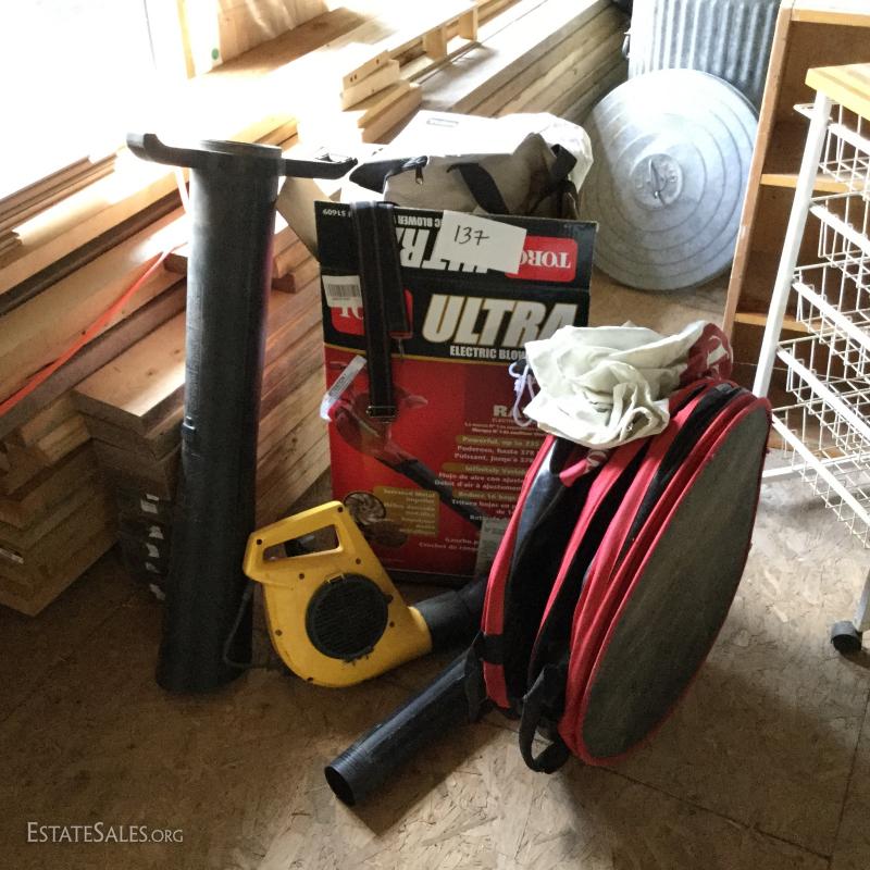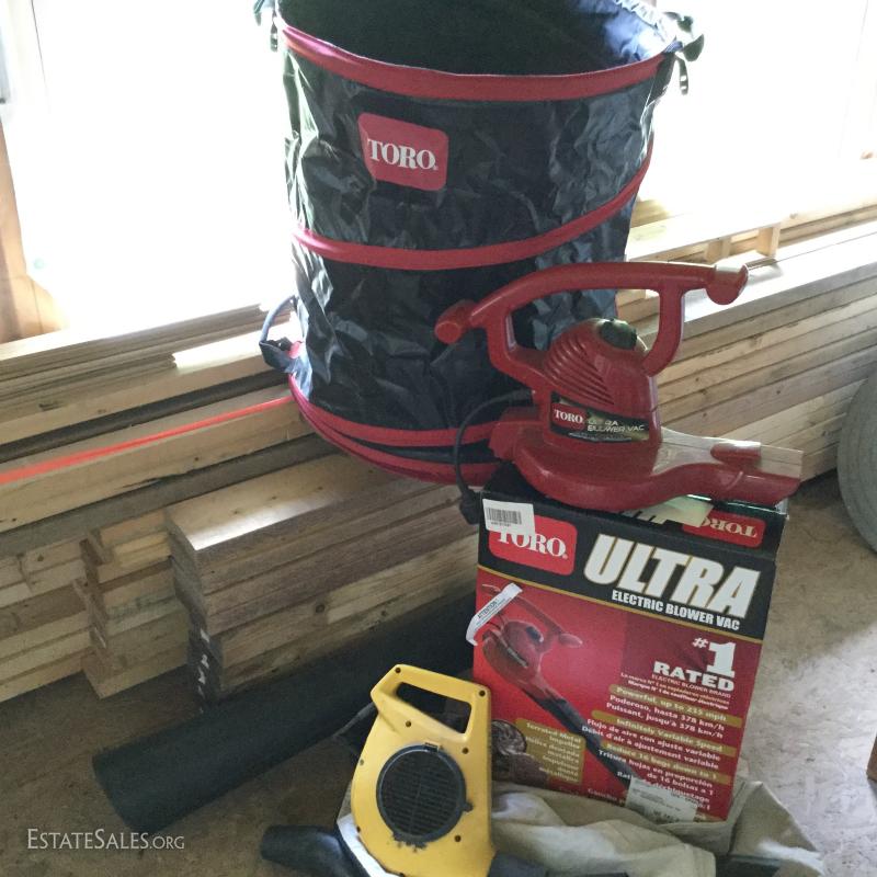Electric Paramount blower/vacuum and Toro Ultra electric blower vac, rated #1 with collapsible bin and bag. Lot available for local pick up in Hendersonville, NC only.