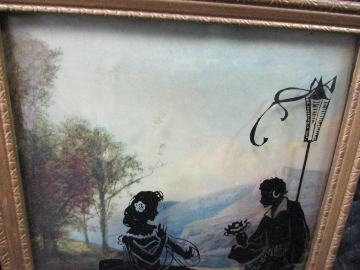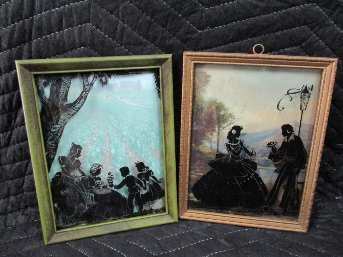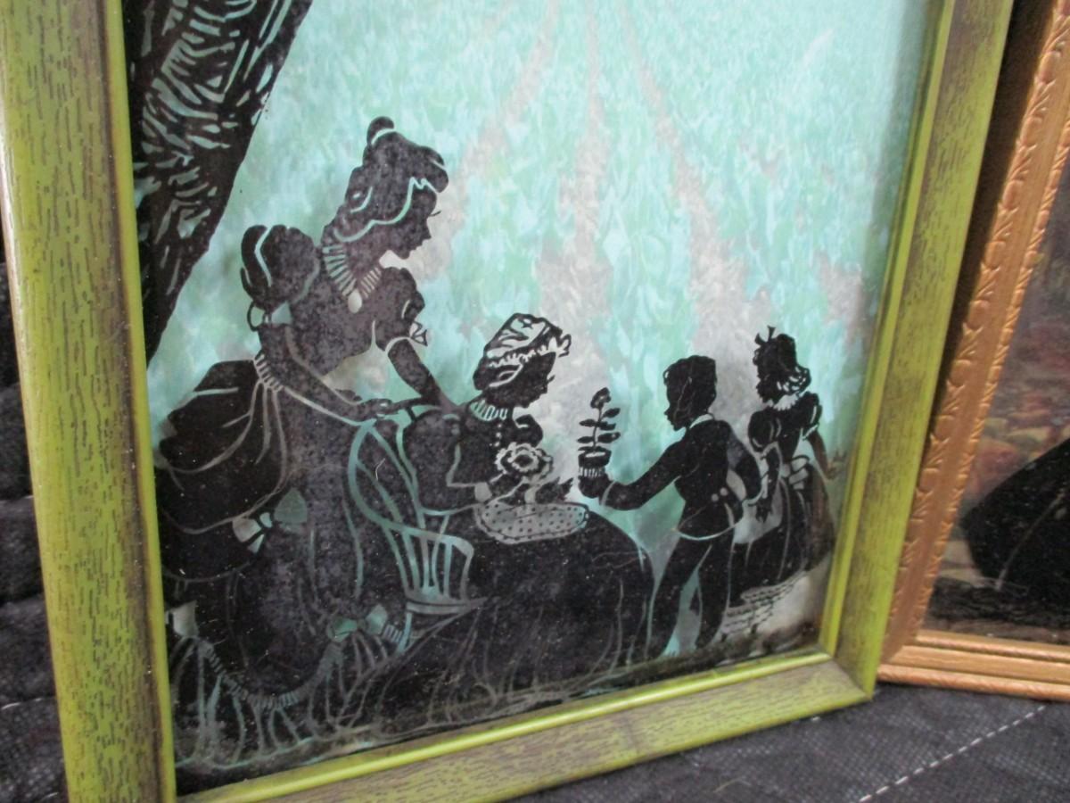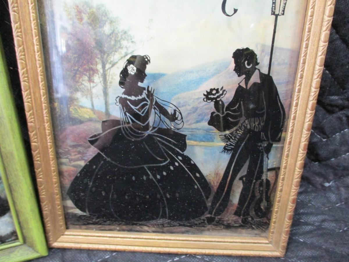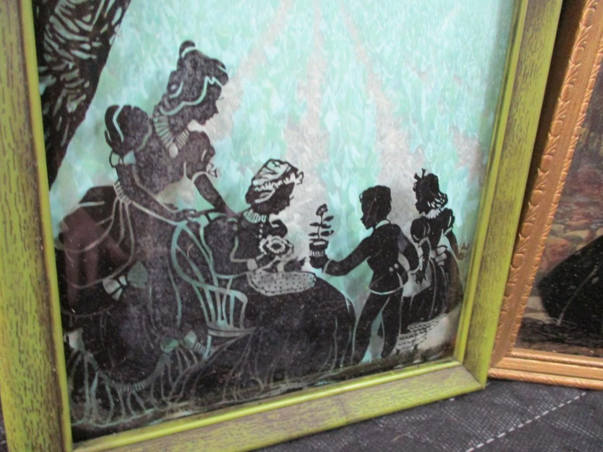 Lot 137 - 2 Vintage Reverse Painted Convex Bubble Glass Pictures Silhouettes
