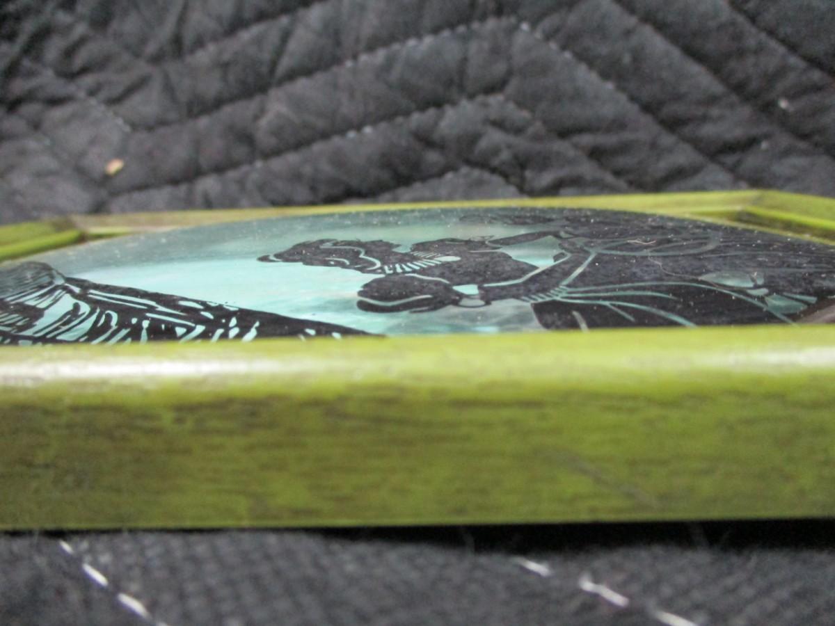 Vintage Reverse Painted Convex Bubble Glass Pictures