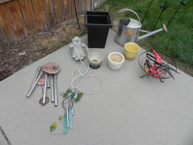 YARD TOOLS, FLOWER POTS, WIND CHIMES, UMBRELLA STAND AND MORE.