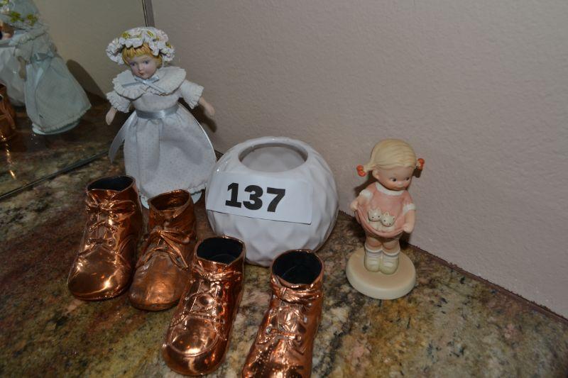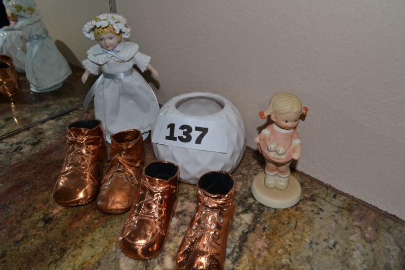 LOT 137 HOME DECOR GROUPING VINTAGE BRONZE BABY SHOES