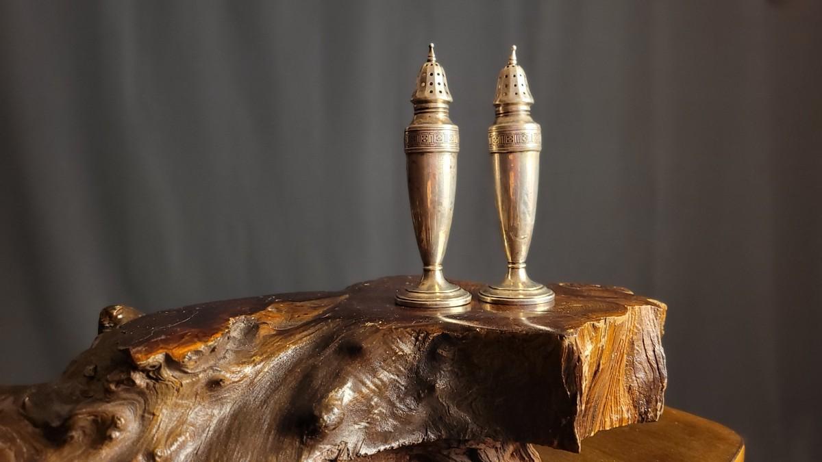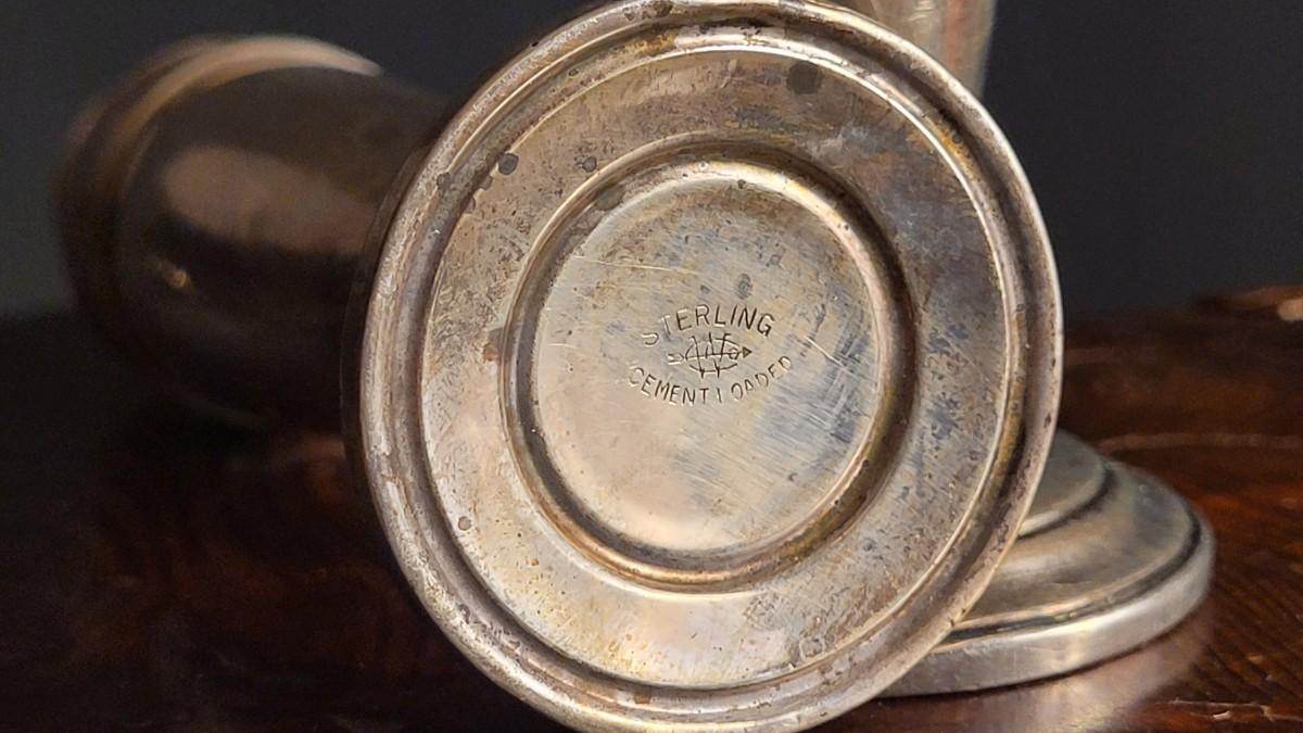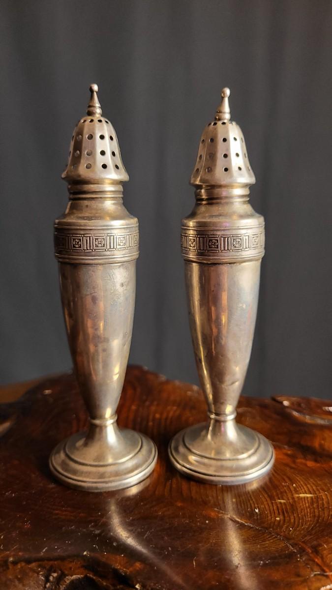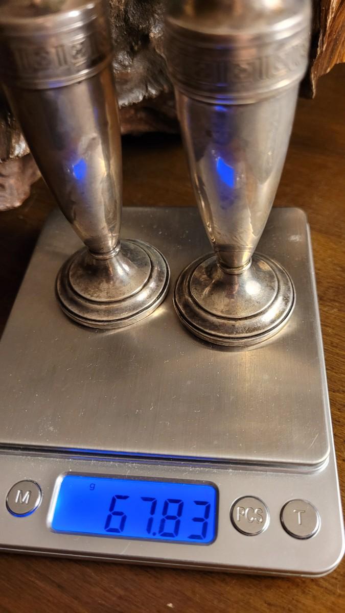 Lot 137: Vintage Sterling Silver Weighted Cement Salt and Pepper Shaker Set
