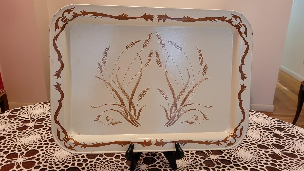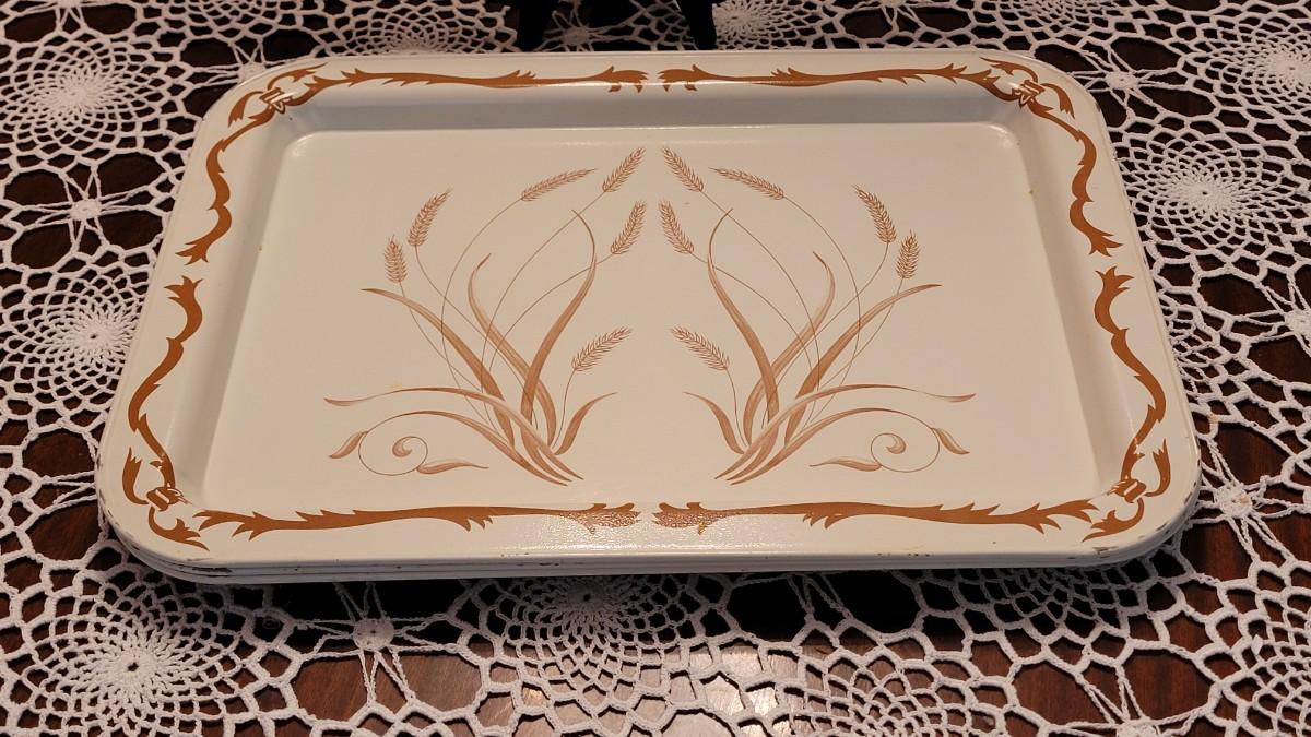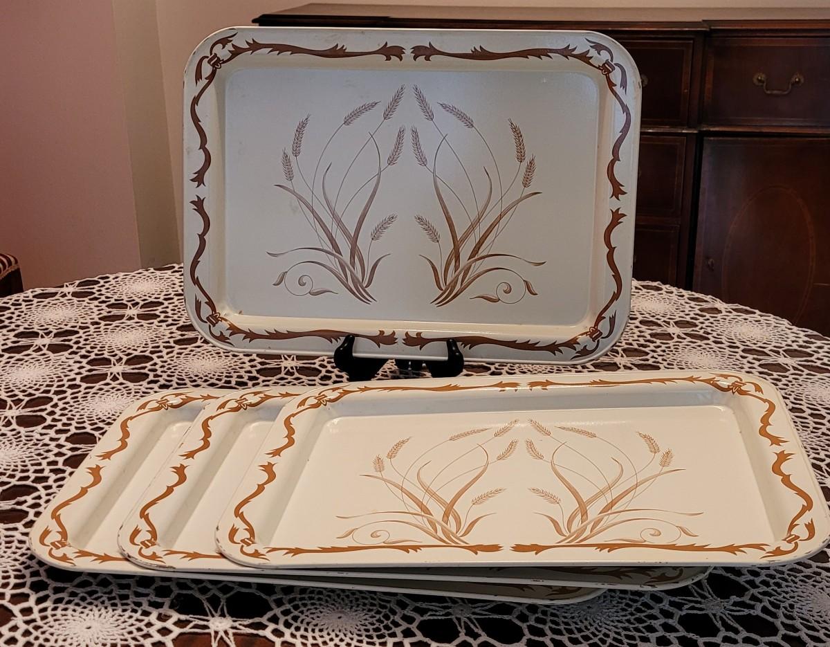 Lot 137: (4) Vintage Mid Century Metal Golden Wheat Trays