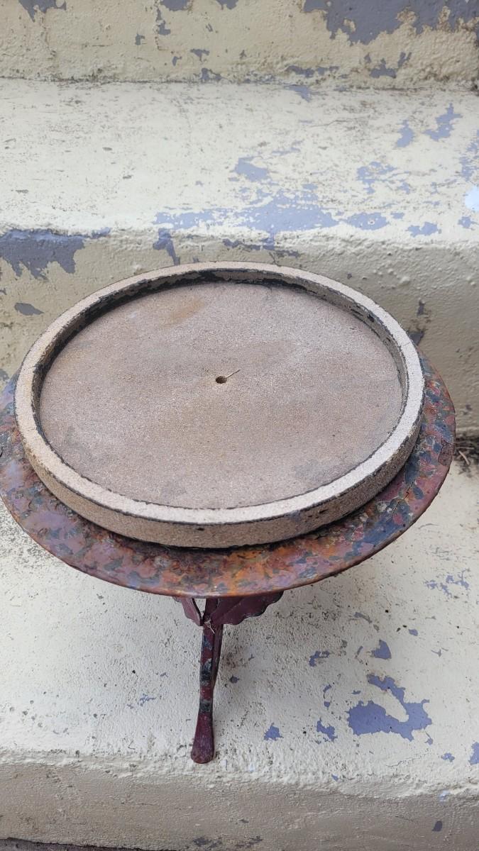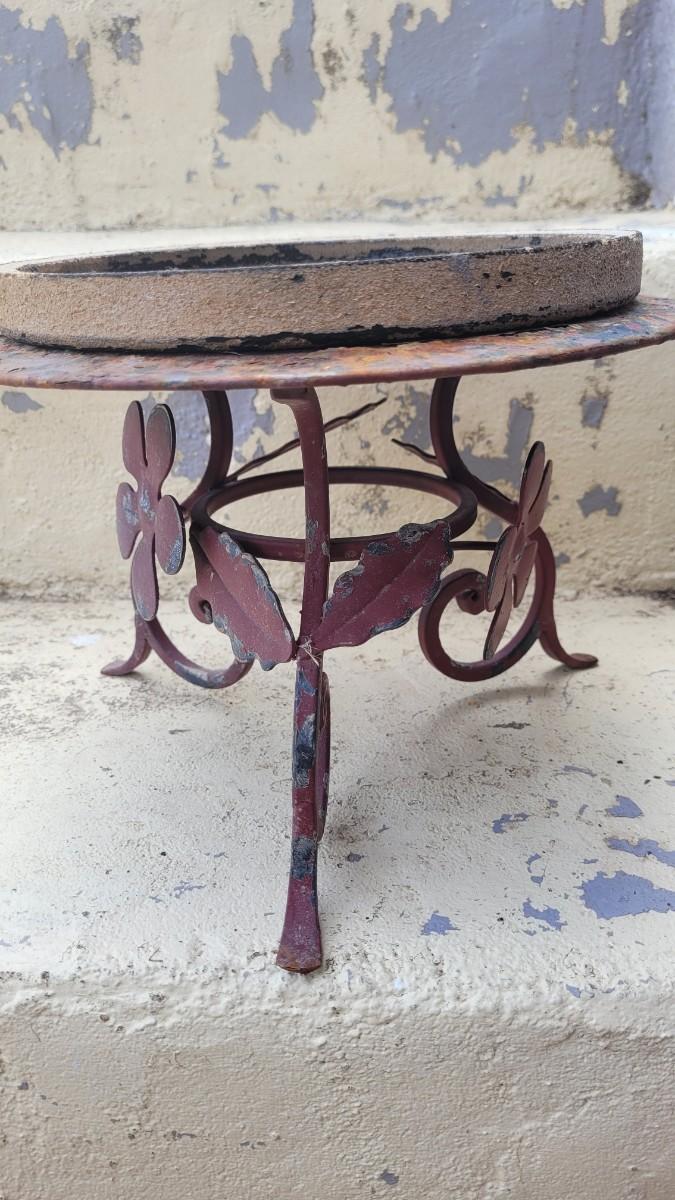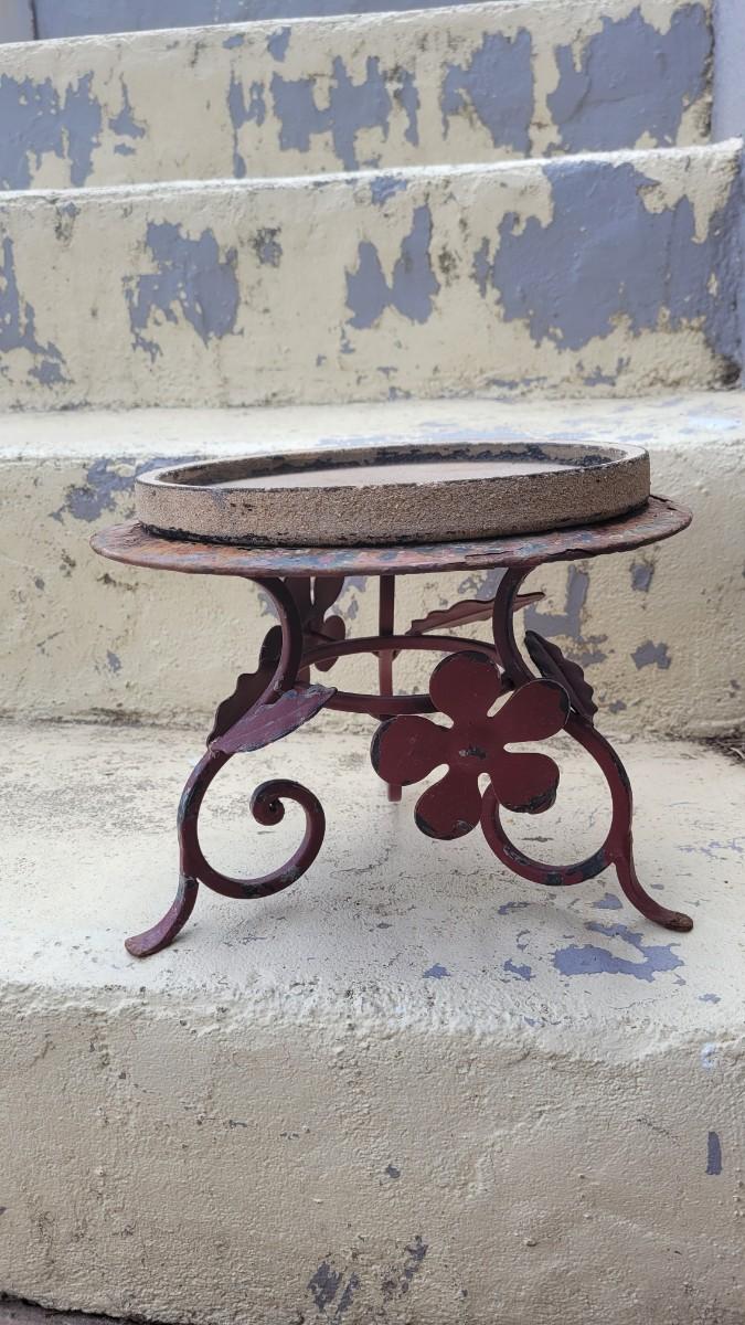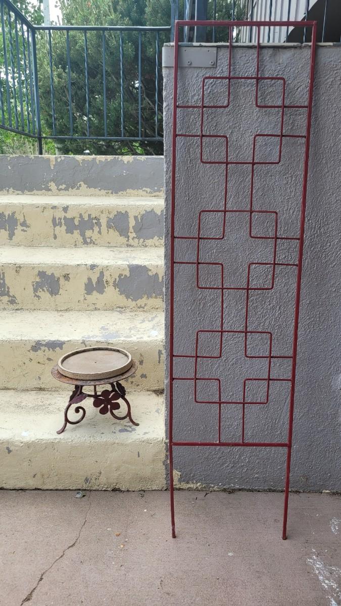 Lot 137: Red Metal Trellis & Red Metal & Stone Plant Stand