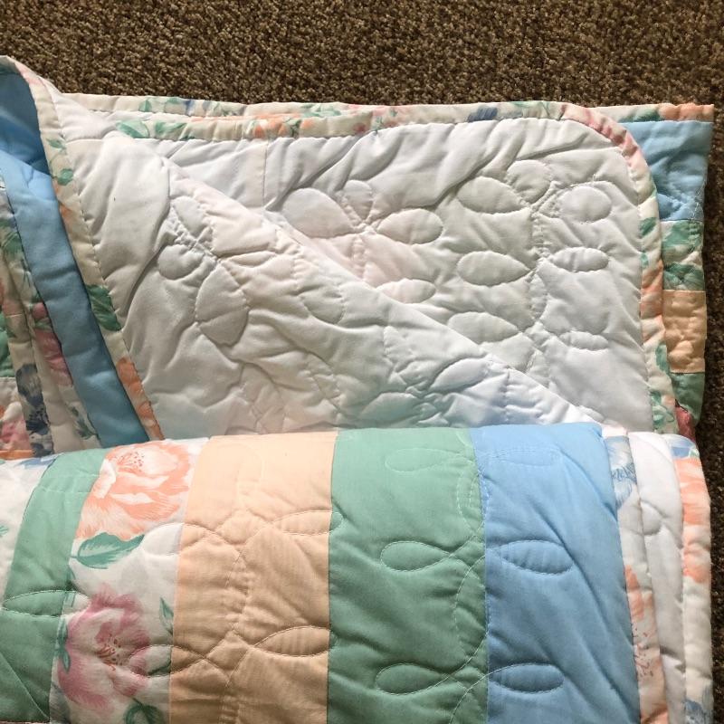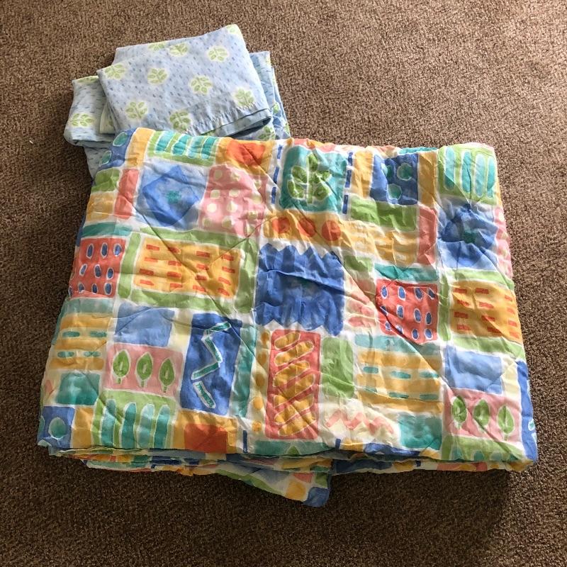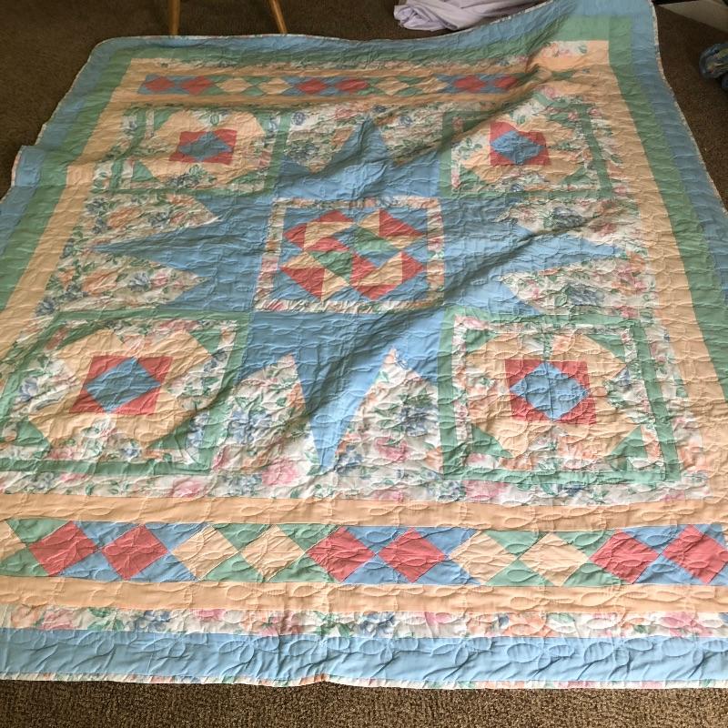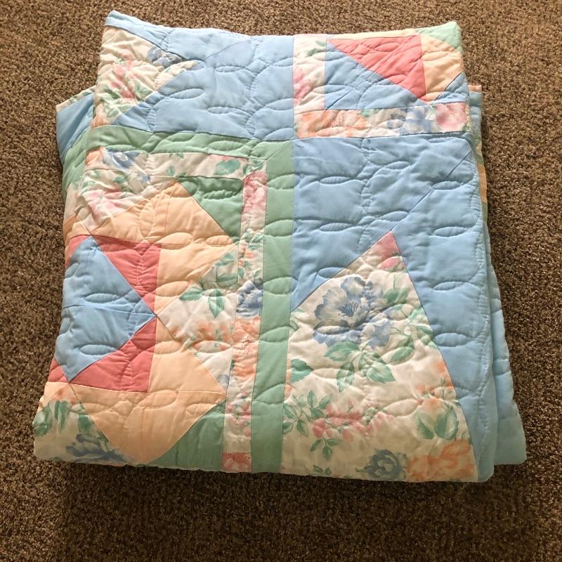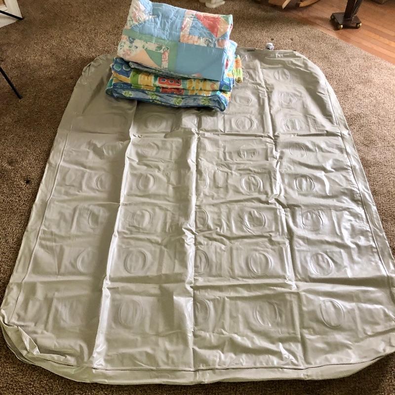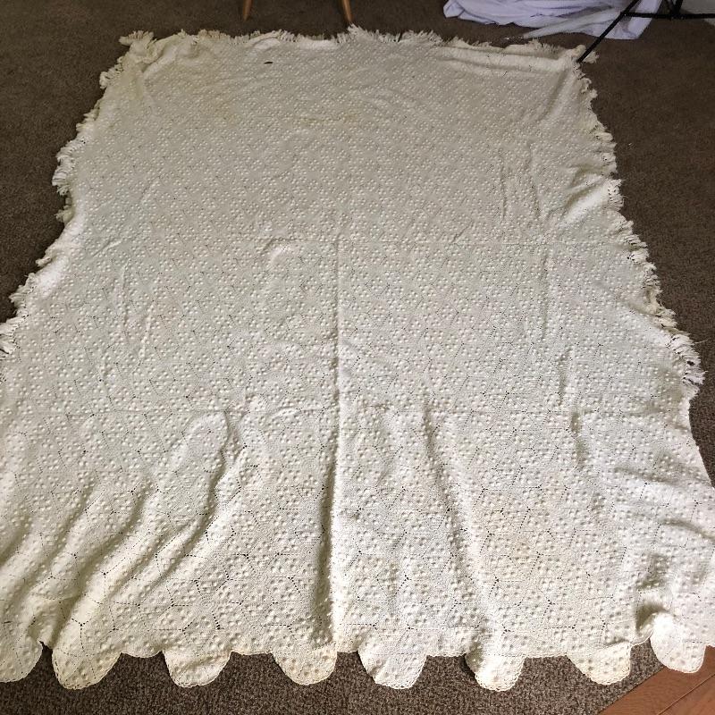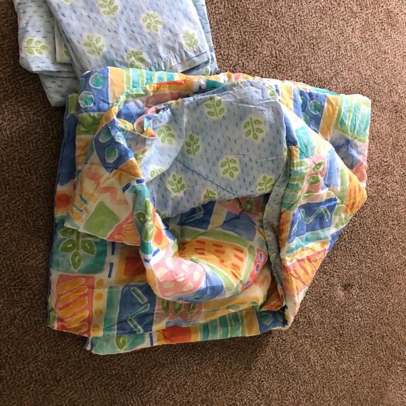 Be ready for that extra guest with this air mattress that comes with a variety of linens both king and queen sized. The air mattress measures 59” x 78”. It was not tested as it does not come with its own air pump. The large assortment of linens includes blankets, duvets, pillow cases and more, see images. Largest is the pretty bedspread with blue, green, peach and white that measures 88” x 98”. Also included here is a matching quilt and sheet set, pillows, blankets and linens for both king and queen beds. The last image is of a gorgeous piece that could be a bedspread or even a table cloth. It is woven and fringed and does have some discoloring and stains.