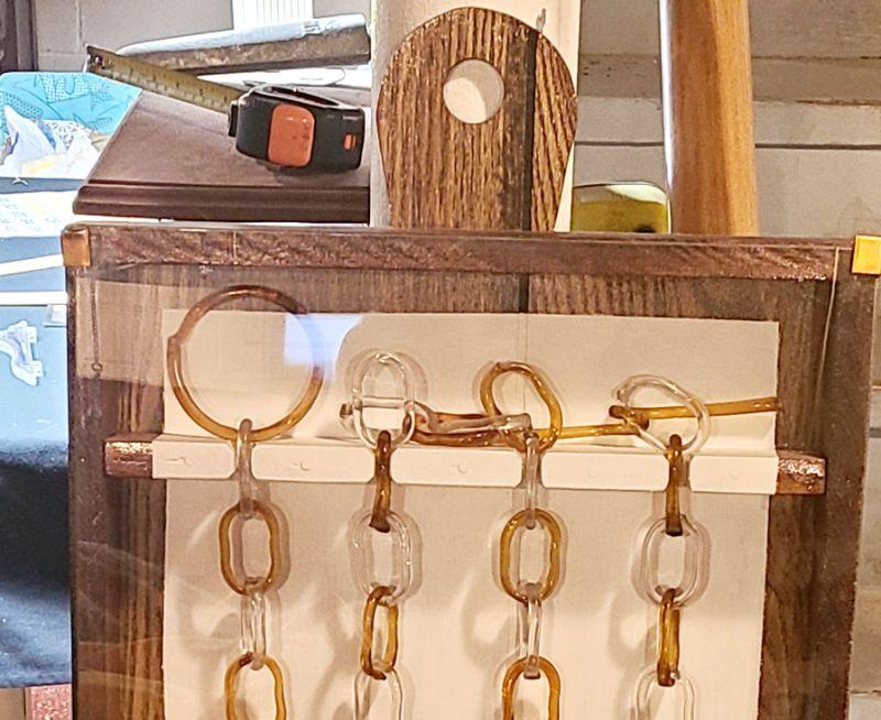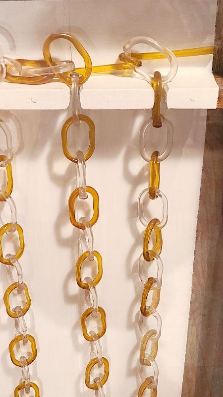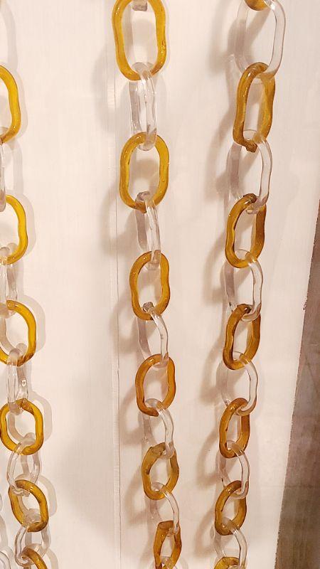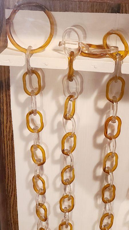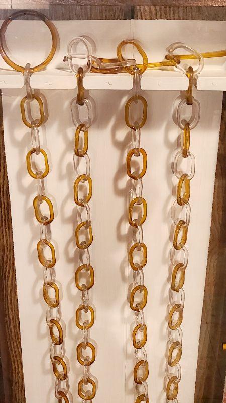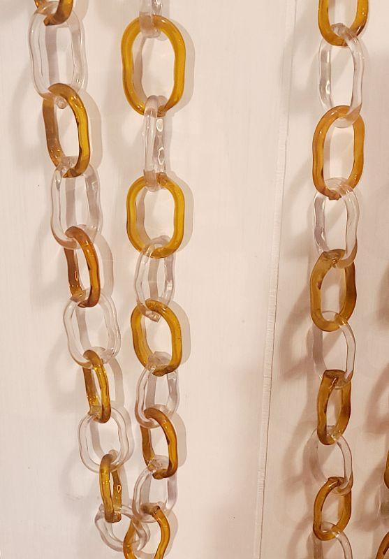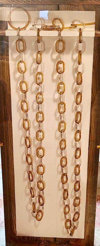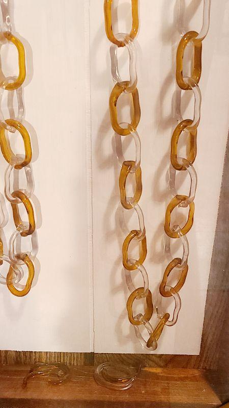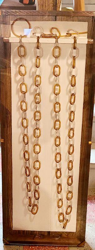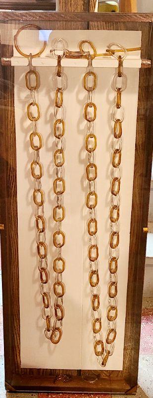 This is another rare find. 140 inches of amber and clear glass, each link hand crimped. This has been mounted in a wood and plexi glass hanging wall case that measures 4ft long, 16 inches wide, and 3 inches deep. CLS Please see all pictures for content of the lot, condition of the lot, and measurements if taken. Pictures are the best representation of the items listed and items are untested unless indicated in description. Thank you for looking and have fun bidding!