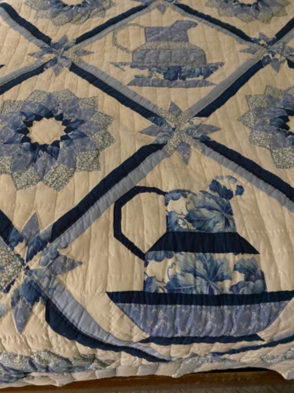 This beautiful handmade full size quilt with pitcher and bowl pattern is in wonderful condition