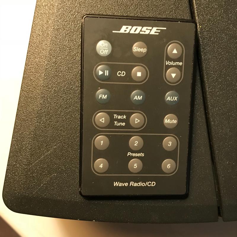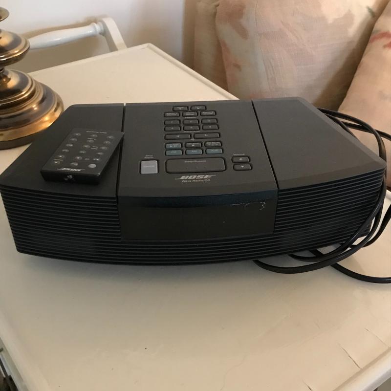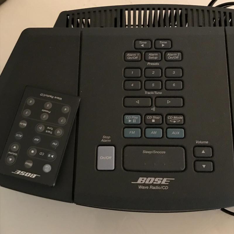 This Bose radio/cd player works great and has excellent sound quality for its size. Remote control works well, too.