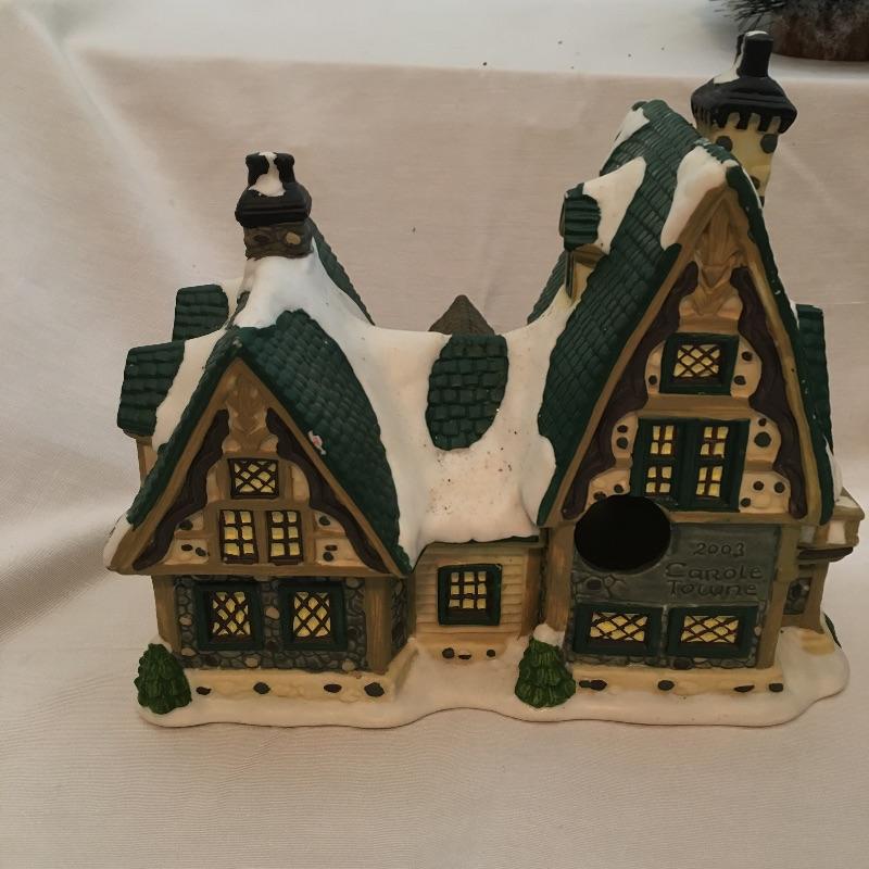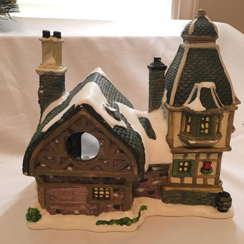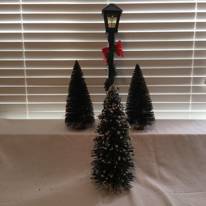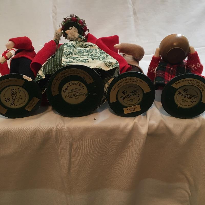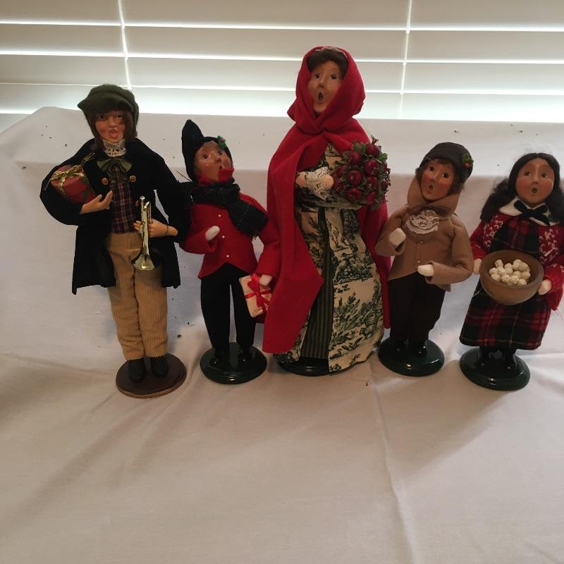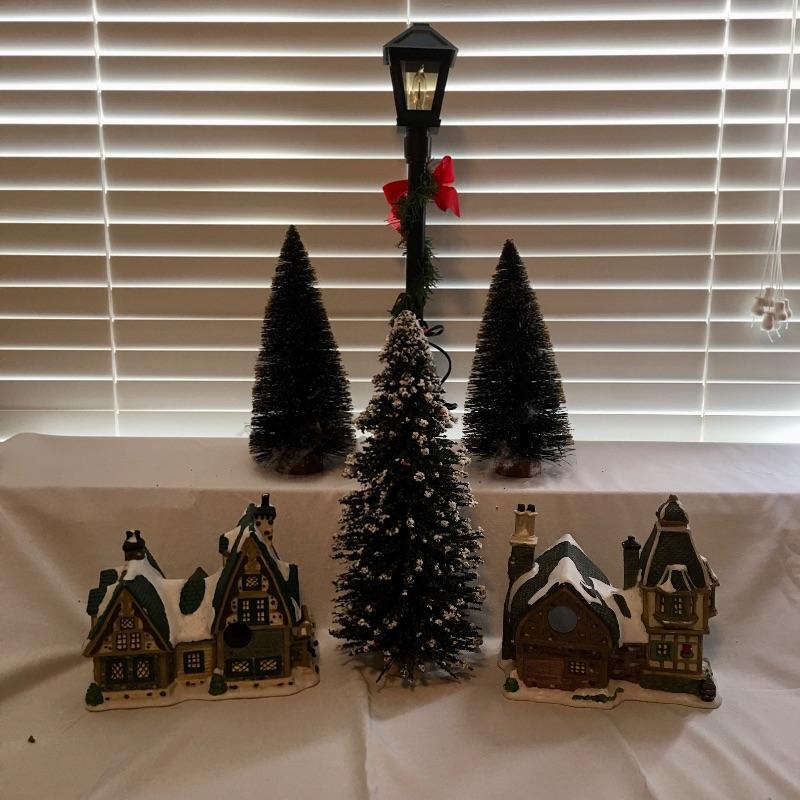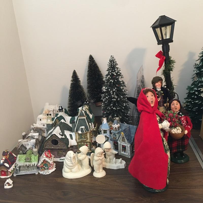 You can never have enough holiday spirit! Four Byers choice carolers, lamp, mini trees, houses, animal figurines. Lamp measures 21.5” tall.