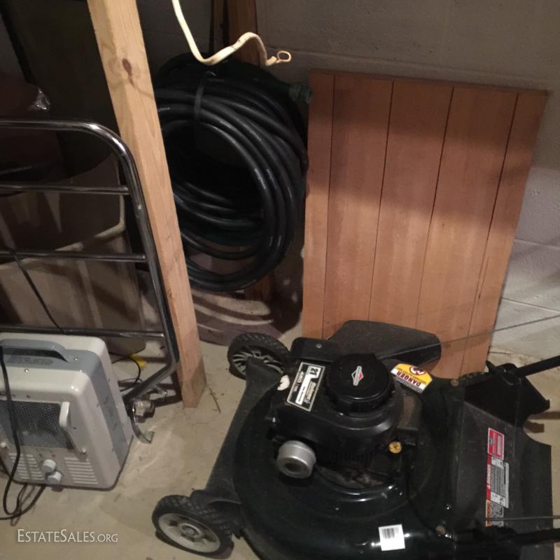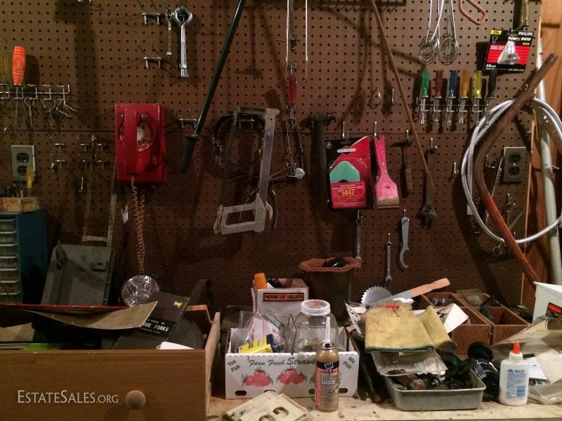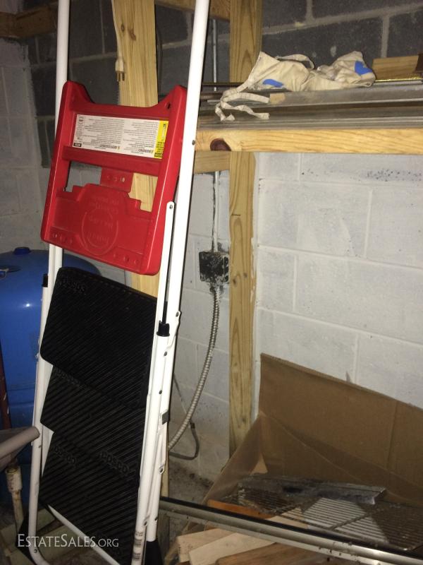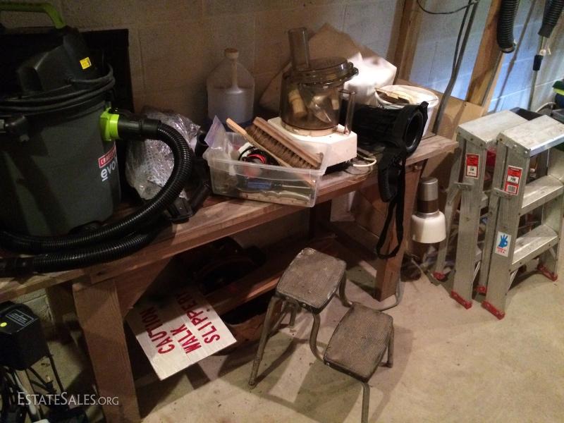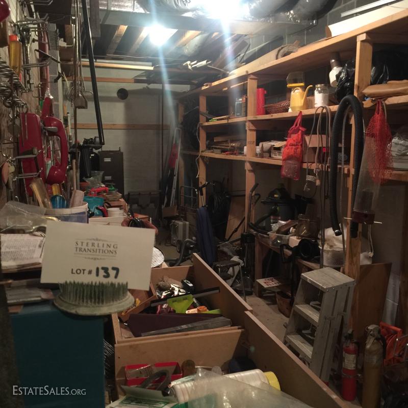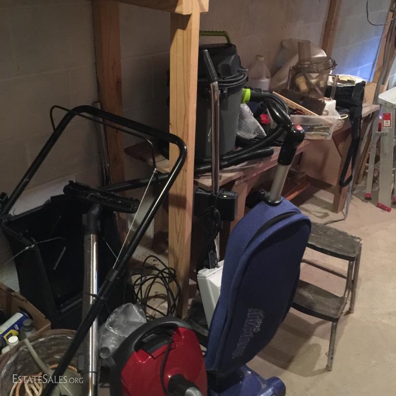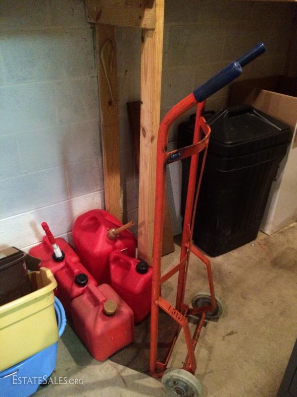 Tool Room includes gas cans, hand truck, chain saw, tools, 2 small ladders, fire extinguishers, vacuumes, electric weed eater, brooms, step stool, cabinets, radios, heaters, lawn mower, file cabinet, plastic wheelbarrow, hoses, garden tools, small coolers, and much more.  SEE PHOTOS FOR DETAILS
