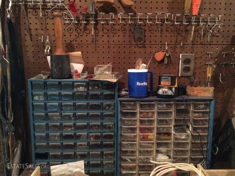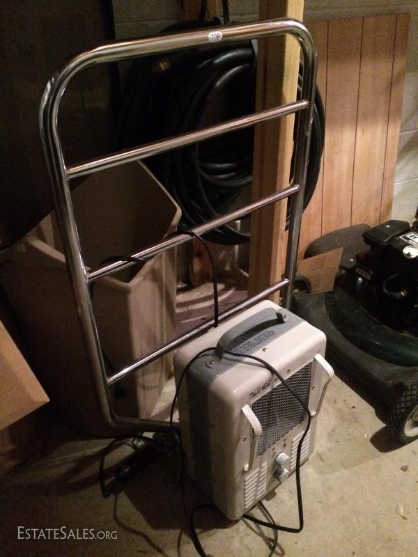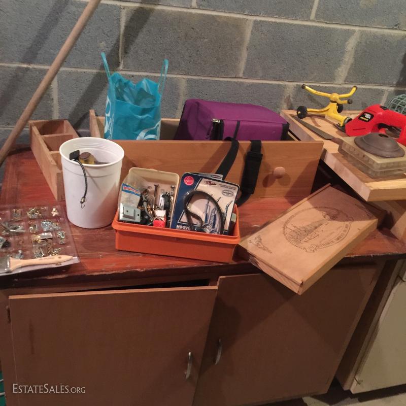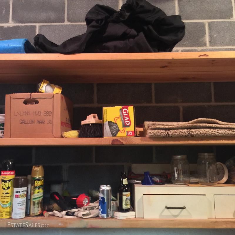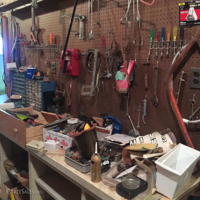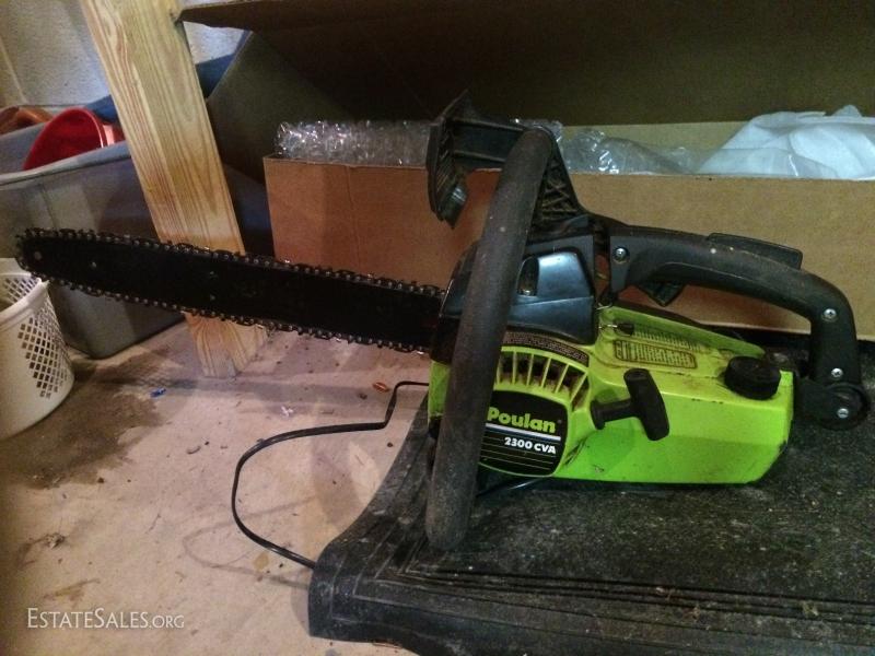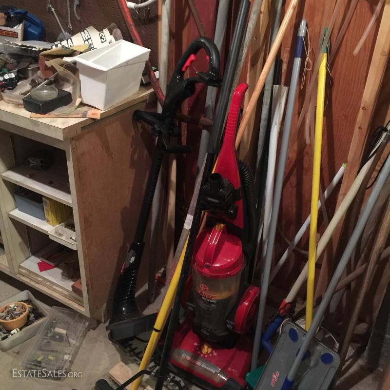 Tool Room includes gas cans, hand truck, chain saw, tools, 2 small ladders, fire extinguishers, vacuumes, electric weed eater, brooms, step stool, cabinets, radios, heaters, lawn mower, file cabinet, plastic wheelbarrow, hoses, garden tools, small coolers, and much more.  SEE PHOTOS FOR DETAILS
