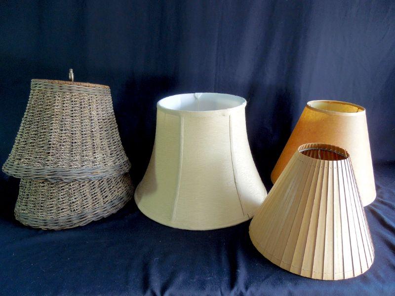 Lot 137: Five Assorted Lamp Shades Cloth, Wood, Rattan and Parchment
