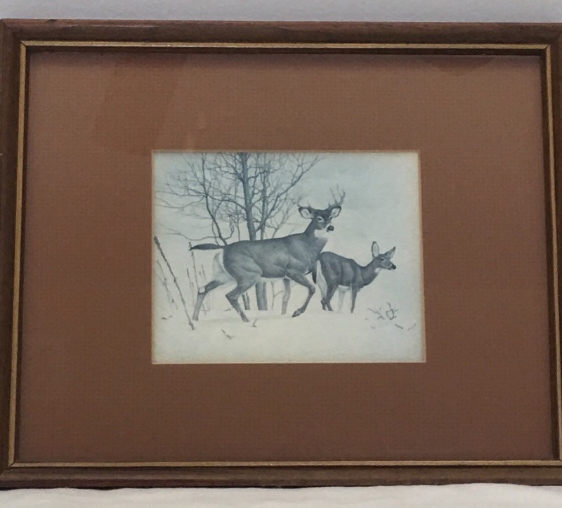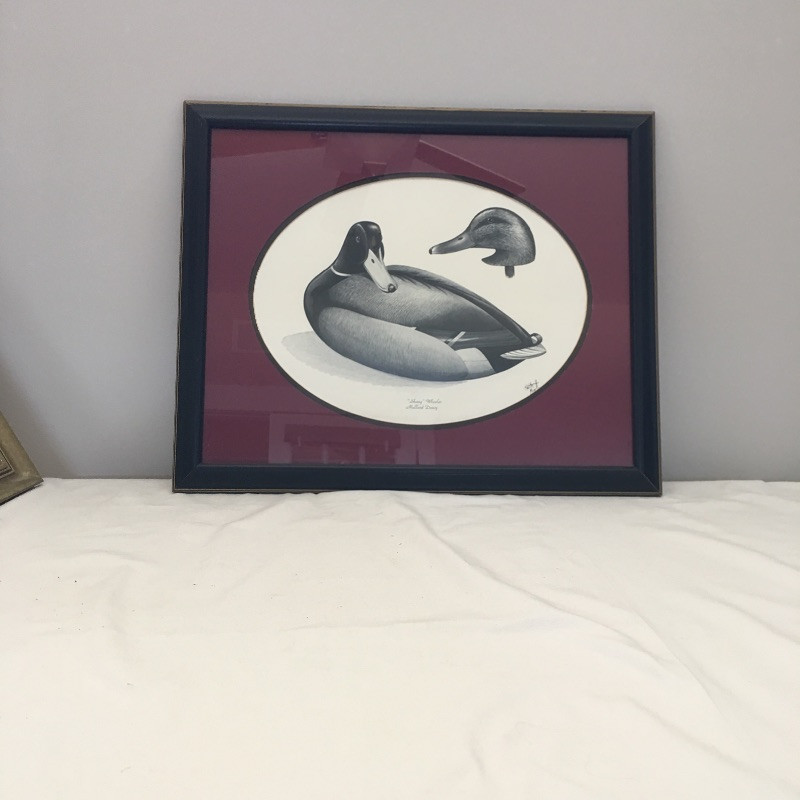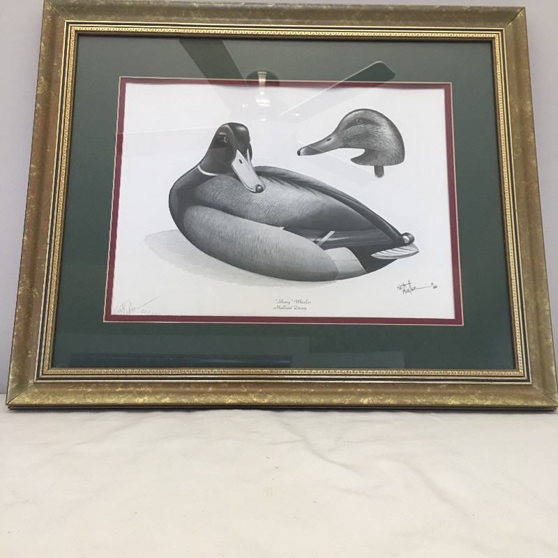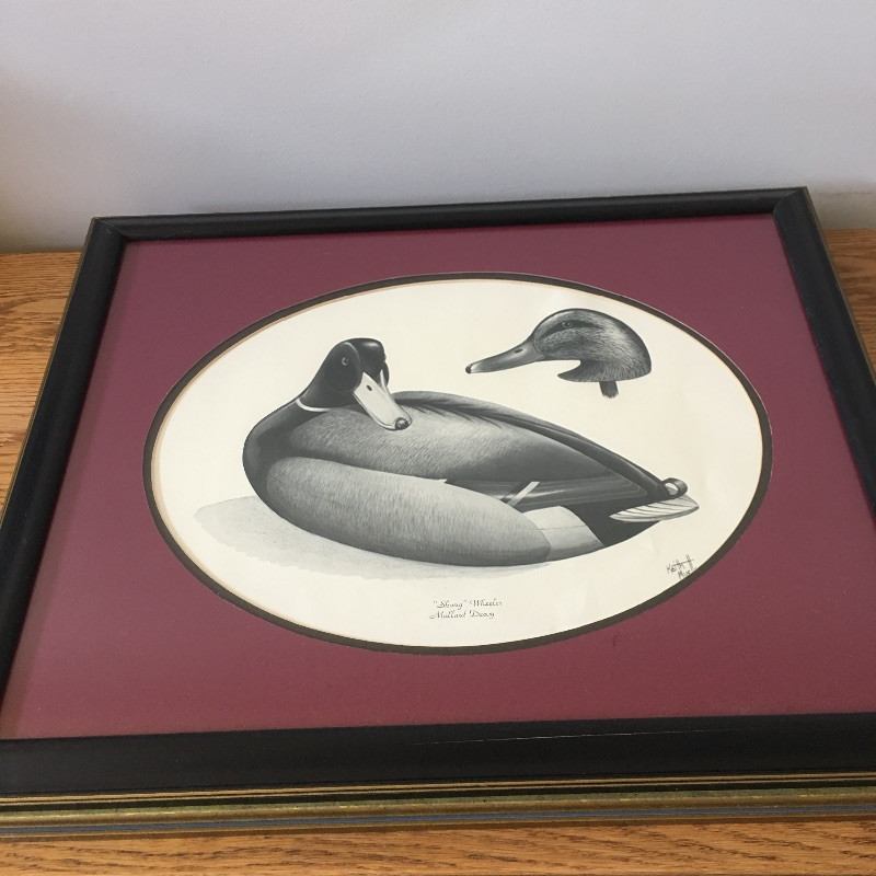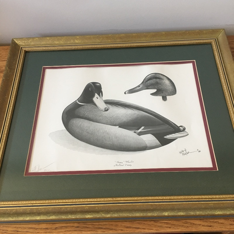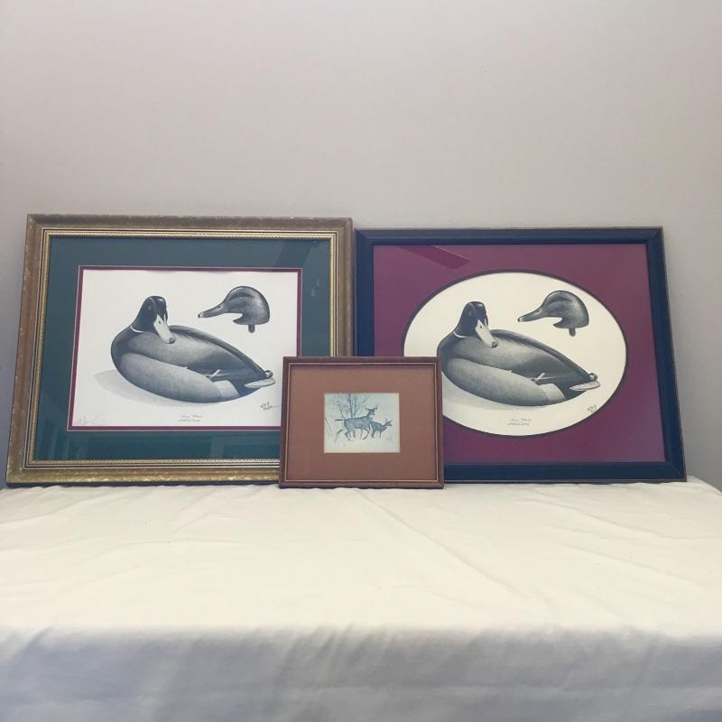 Pair of Keith Mueller -Wheeler Mallard Decoy prints one is numbered and signed twice, see pictures. Also a framed and matted deer artwork. A nice collection for the nature lover. Largest frame measures 19” x 23”.