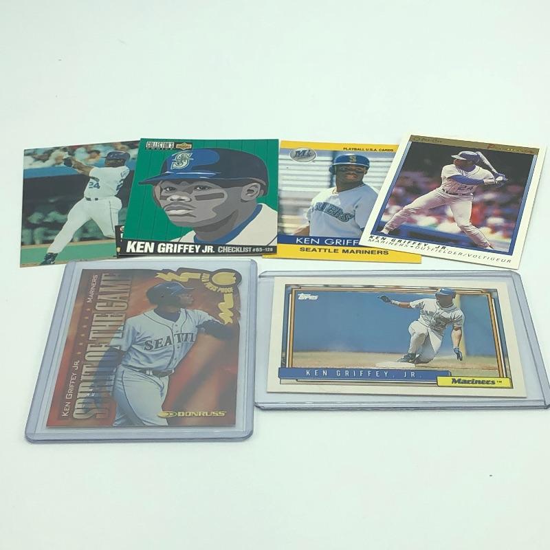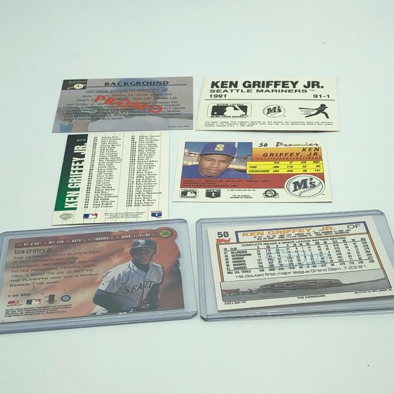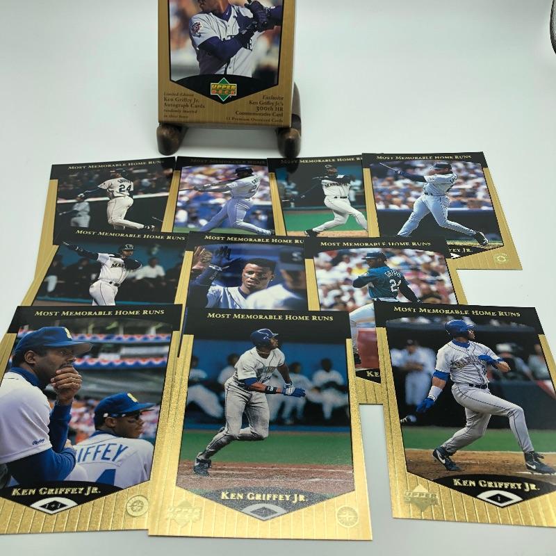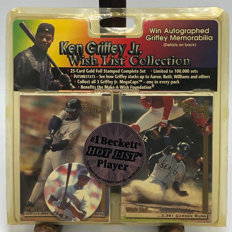 Amazing Ken Griffey Jr. signed photo with COA! Lot also includes unopened 2 pack wish list collection, 2 factory sealed packs of club house series “A closer look” sets, a limited edition 22 K Gold signature card and tons of single cards.