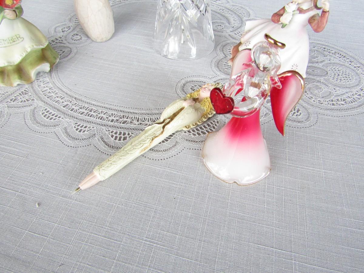 WILLOW TREE ANGEL, CRYSTAL BELL, LEFTON FIGURINE, GLASS MOUSE AND GRADUATION SCENE ON PRISM LIGHT, GLASS ANGEL AND PEN