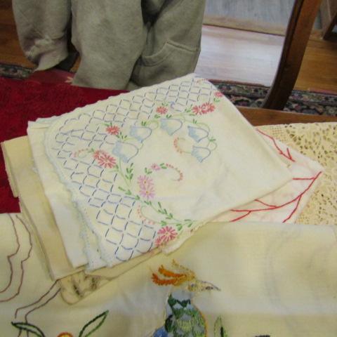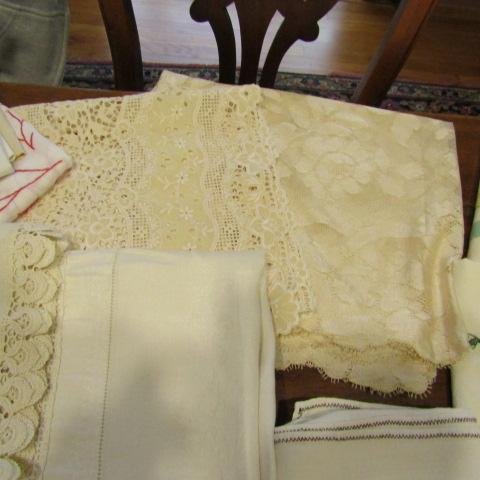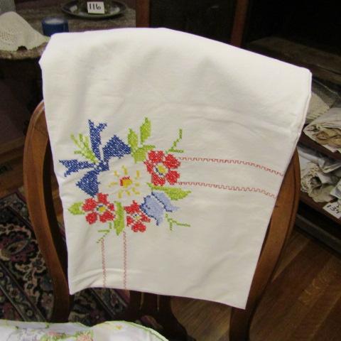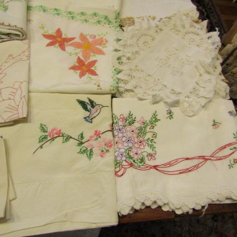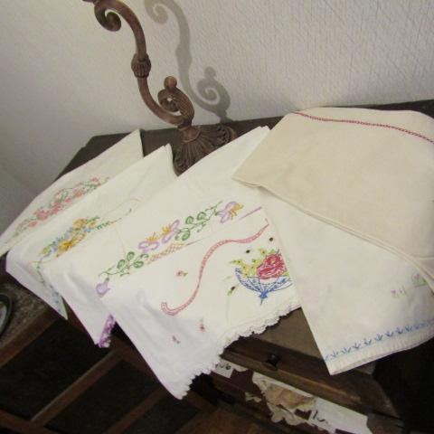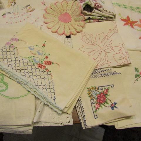 EMBROIDERED OR CROCHETED PILLOWCASES, TABLE RUNNERS, DRESSER SKIRTS ETC