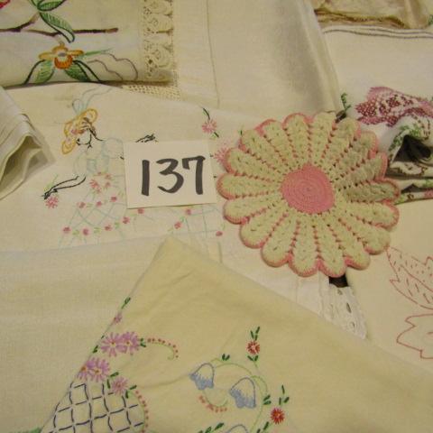 LOT 137 LARGE LOT OF VINTAGE LINENS
