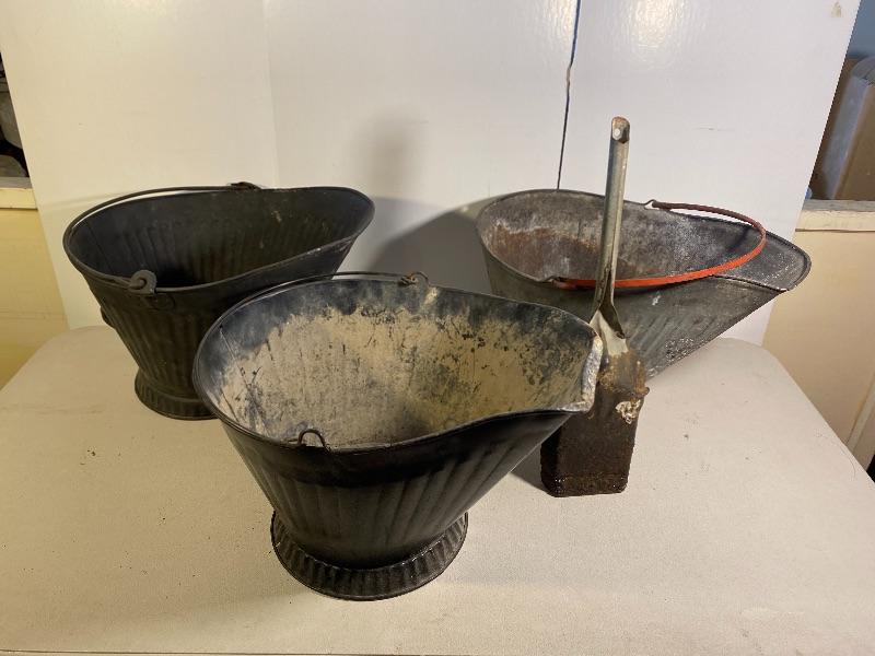 Lot# 137 Lot of 3 Ash Buckets Coal Buckets Ash Shovel