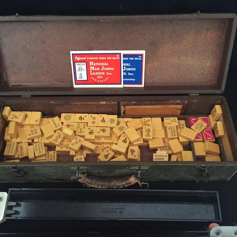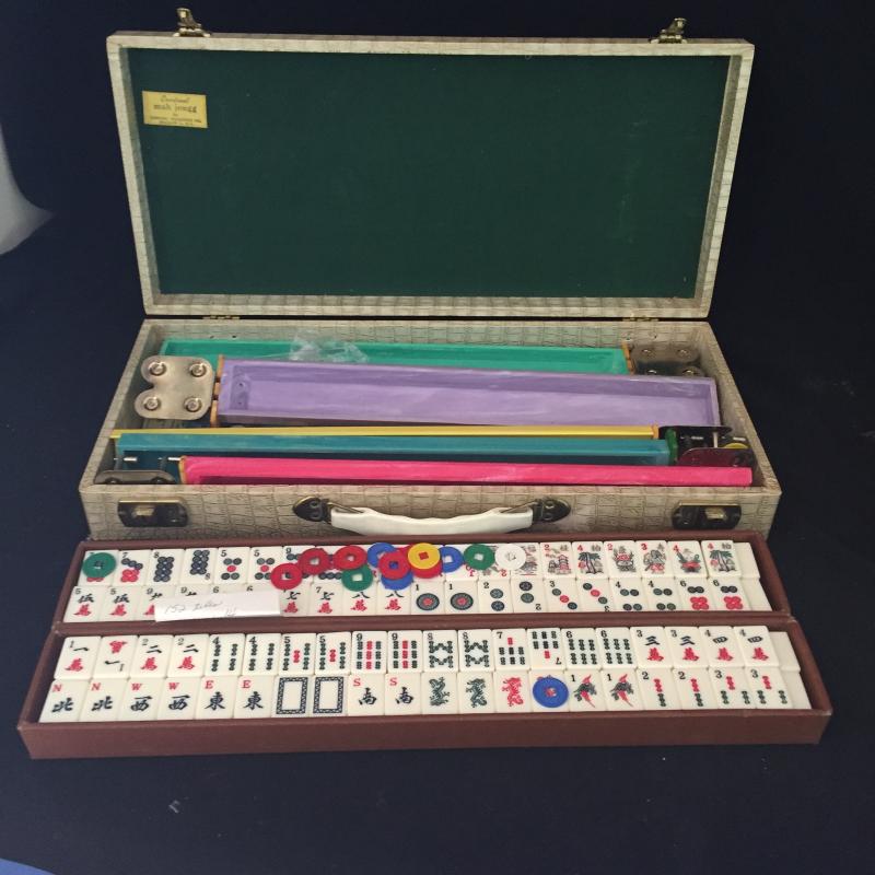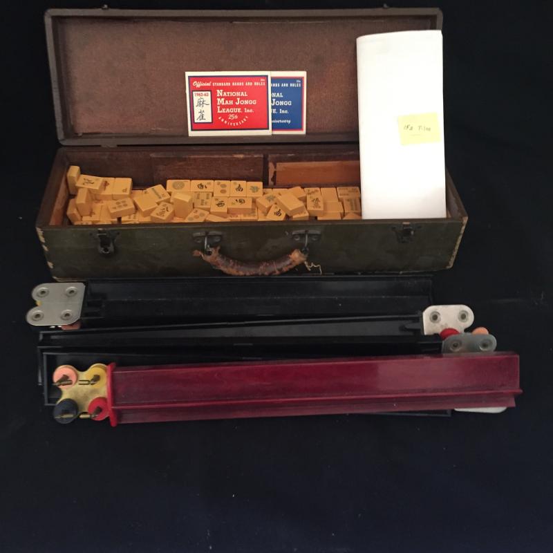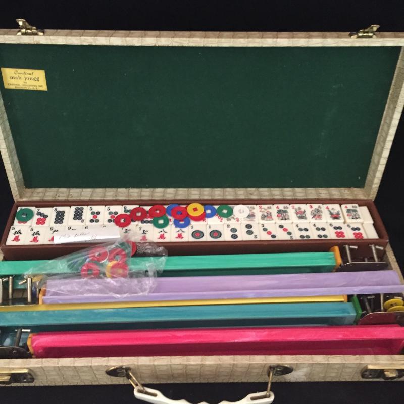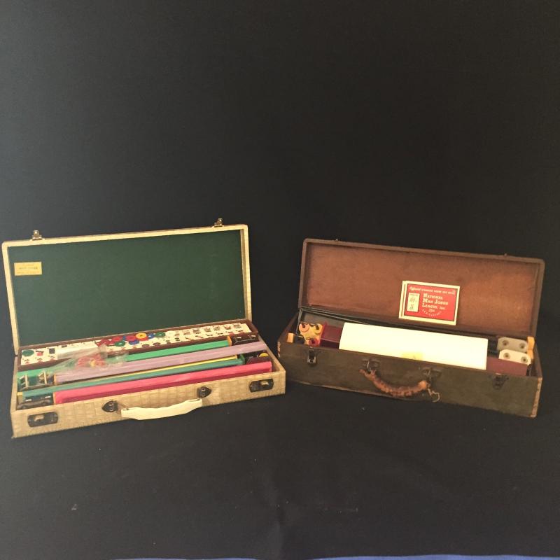 Pair of Mah Jongg Game sets in Cases. Both sets in excellent shape. Small Case is worn. Larger case Measures 19.5” x 9” x 3.5”.
