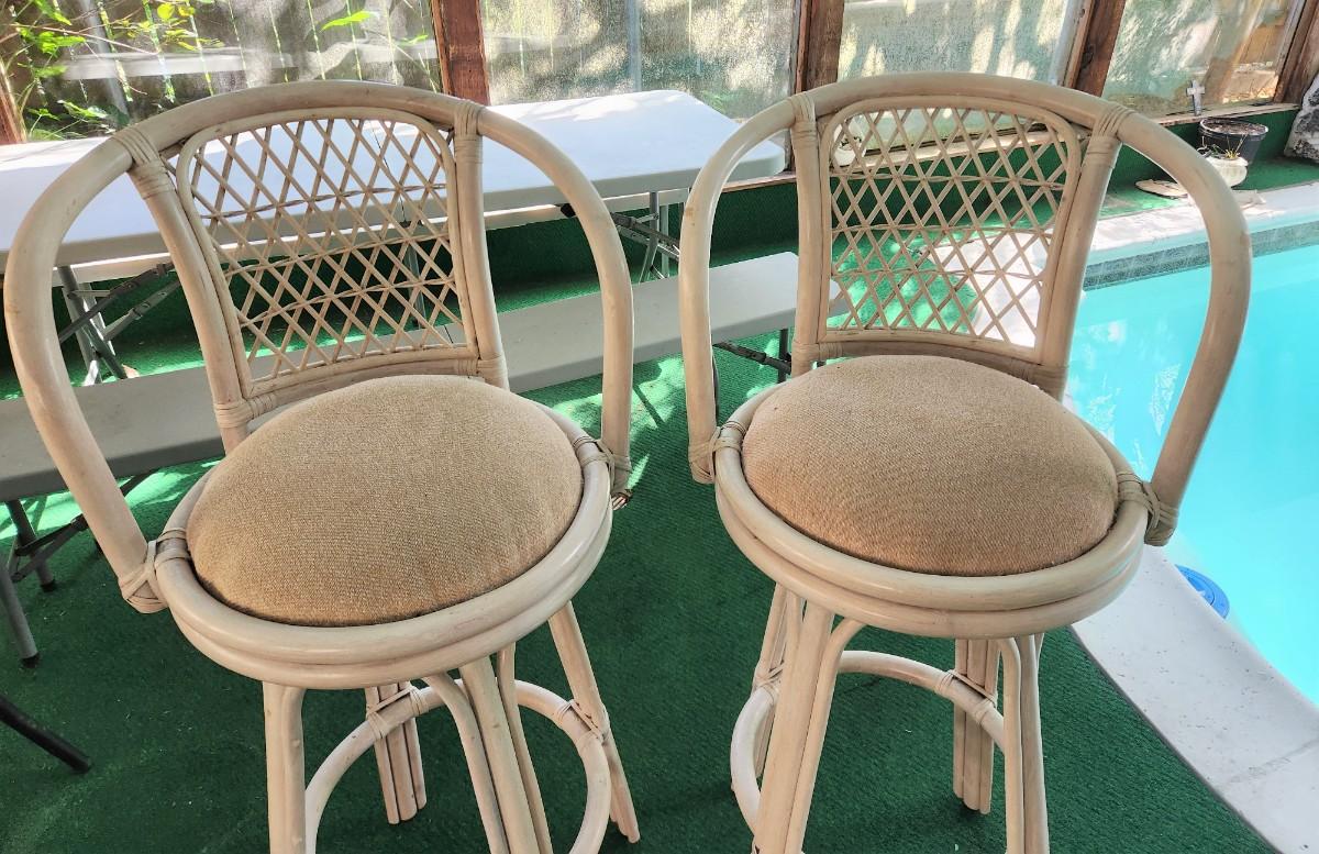 Lot #137  Pair of Vintage Rattan Bar Stools