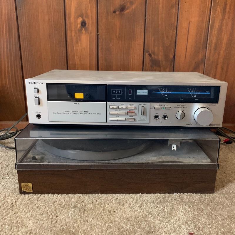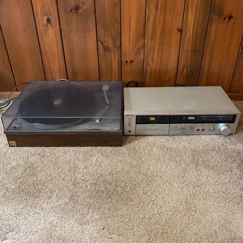 This lot includes a Technics Stereo Cassette Deck and an AR Turntable. Both power on when plugged in. The Technics Stereo Cassette Deck is Model RS-M224 and Serial number RA340572. The AR turntable is the XA model with serial number XA251121. Turntable is not in the best condition though does appear to be operating. Local pickup only.
