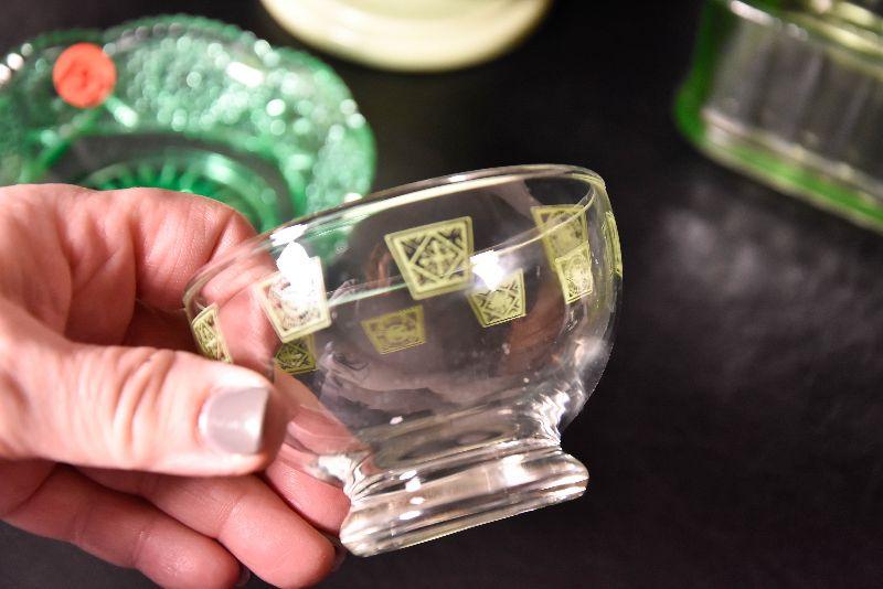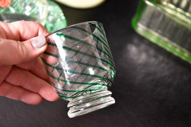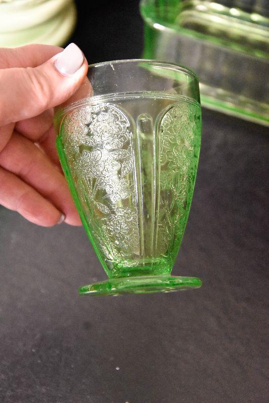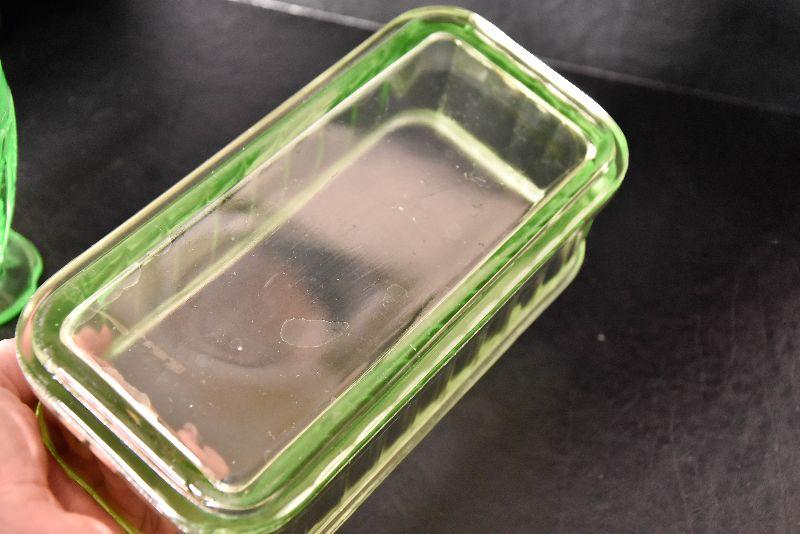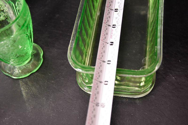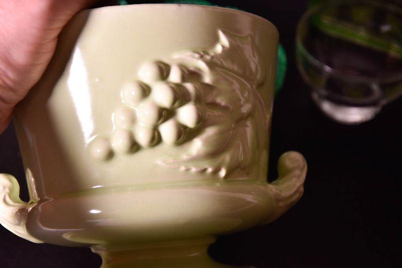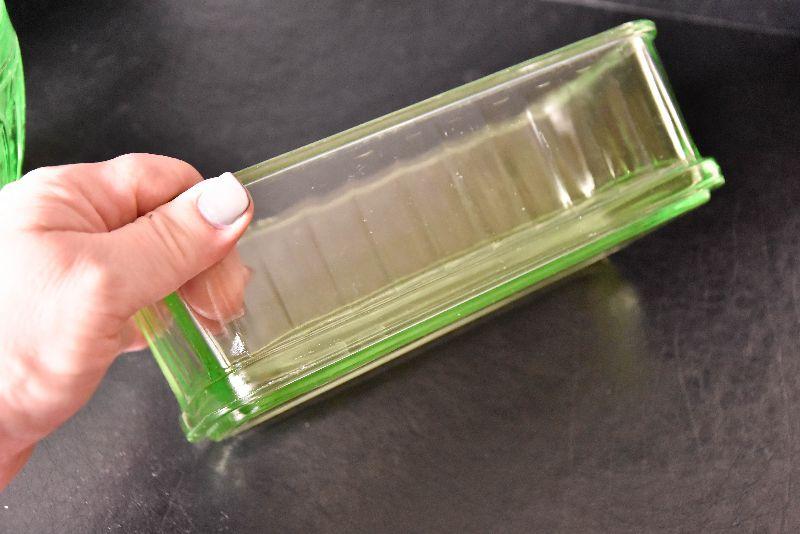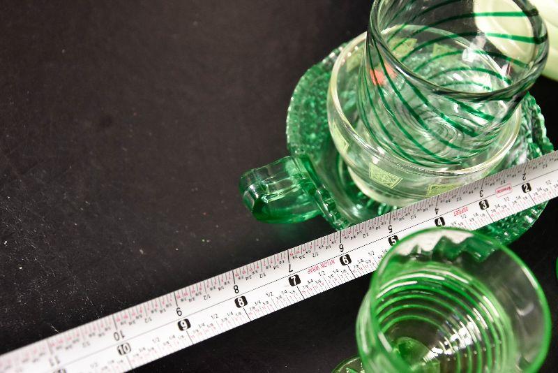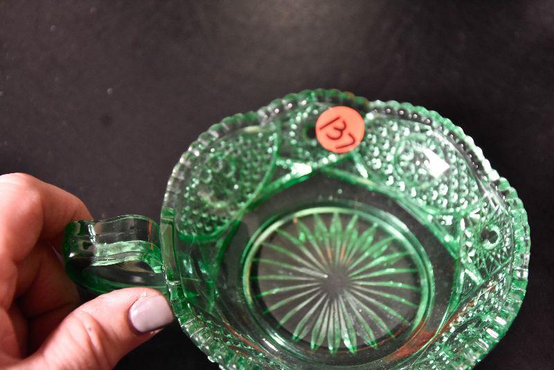 Mix match of green - depression glass, Hull pottery, and more