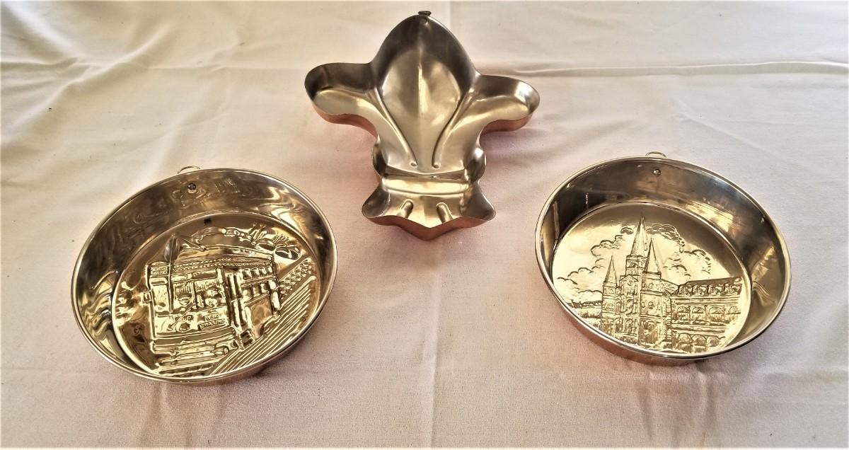 You get all three pieces - Fleur di Lis (10" x 8.25"), New Orleans streetcar and St. Louis Cathedral (each 7.25" x 7.5". Good, unused condition. Decorative.