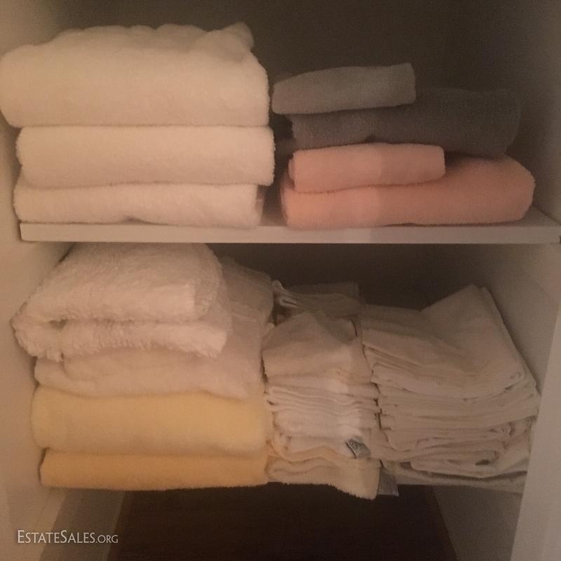 Lot of towels, wash cloths, pillow cases and a bath matt. This lot is available for local pick up in Asheville, NC only.