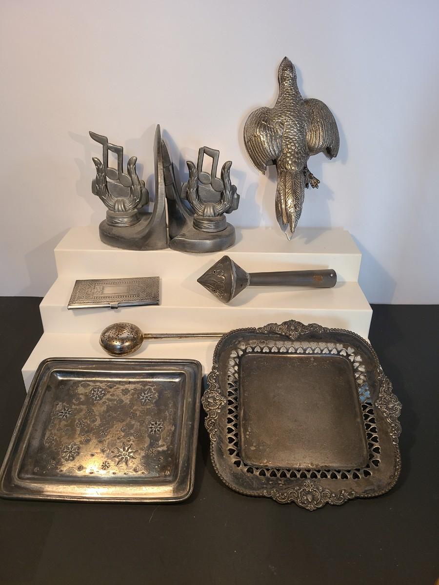 Lot 137: Victorian Quadruple Plate Trays, Pheasant Clip, and more