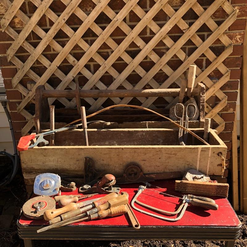 Lot 137 - Vintage Wooden Tool Boxes & Vintage Tools