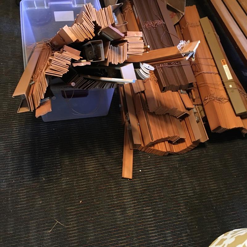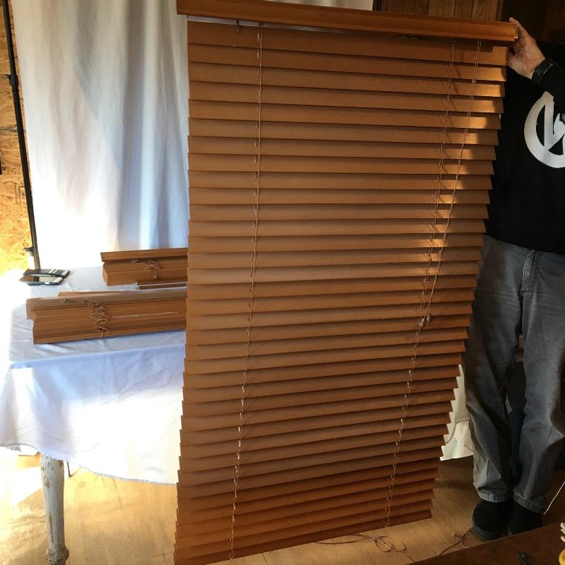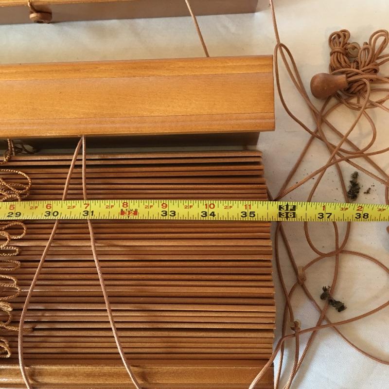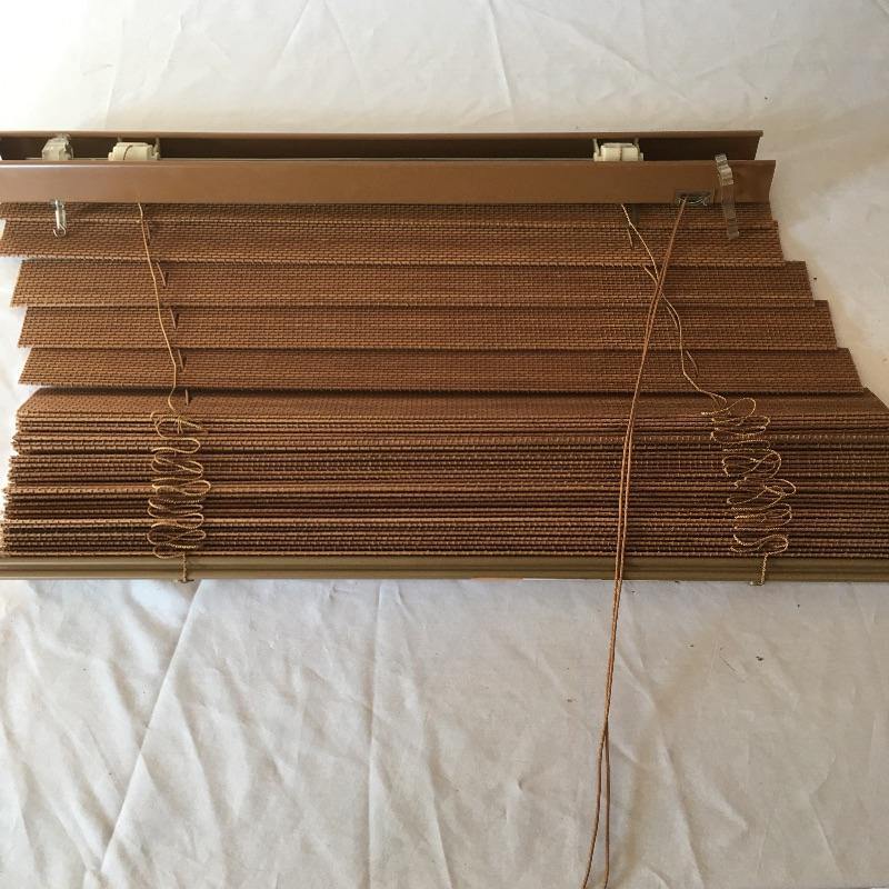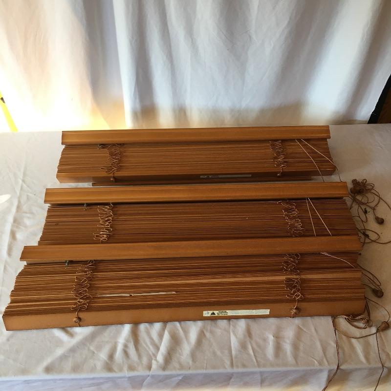 Get your window treatments all in one place with this large collection of window shades. Lot includes seven wooden shades that measure 35.5” x 65”, three 26.5” x 65” wicker style shades and two more shades. Also includes installation parts, see pictures.
