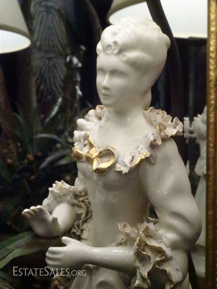 LOT 137A: PAIR PORCELAIN FIGURAL LAMPS, WHITE AND GOLD LADY AND GENTLEMAN