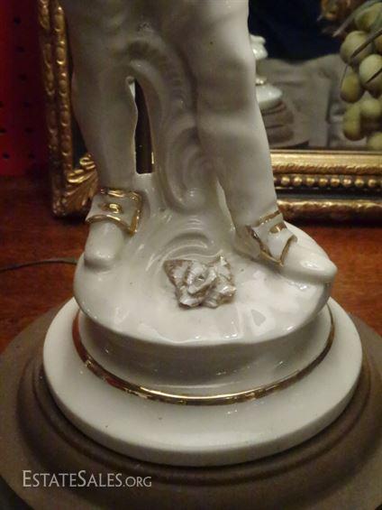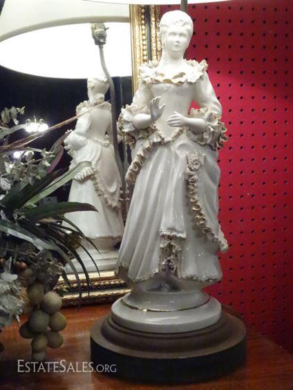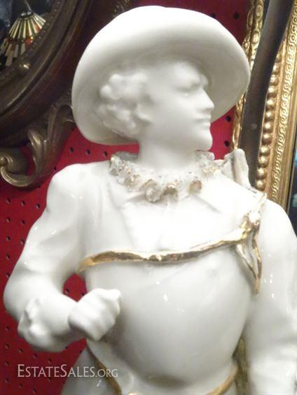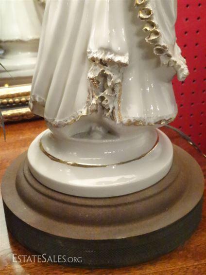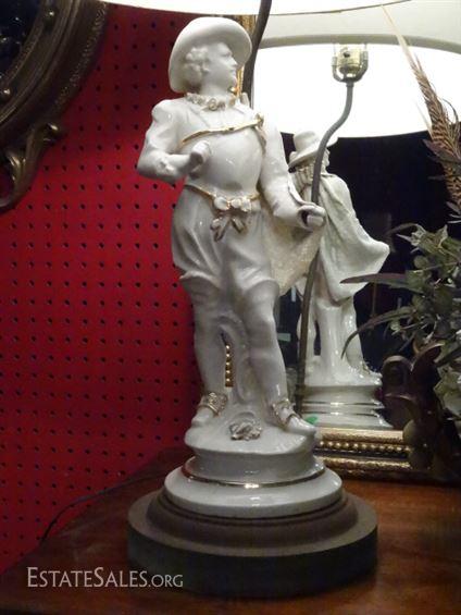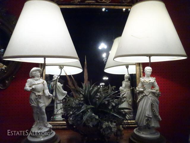 LOT 137A: PAIR PORCELAIN FIGURAL LAMPS, WHITE AND GOLD LADY AND GENTLEMAN, VERY GOOD CONDITION, 33"H, SKU016.24